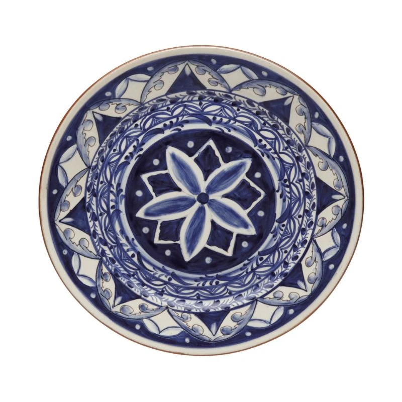 This stunning piece, crafted from durable terracotta, showcases an exquisite hand-painted blue and white motif that captures the essence of Mediterranean elegance.