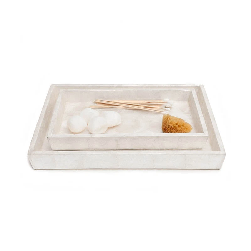Made of natural Capiz shells, our beautiful Amphitrite Capiz Trays make a beautiful and functional accent on a bathroom counter or vanity. Use this tray to organize and display skincare, makeup or jewelry.