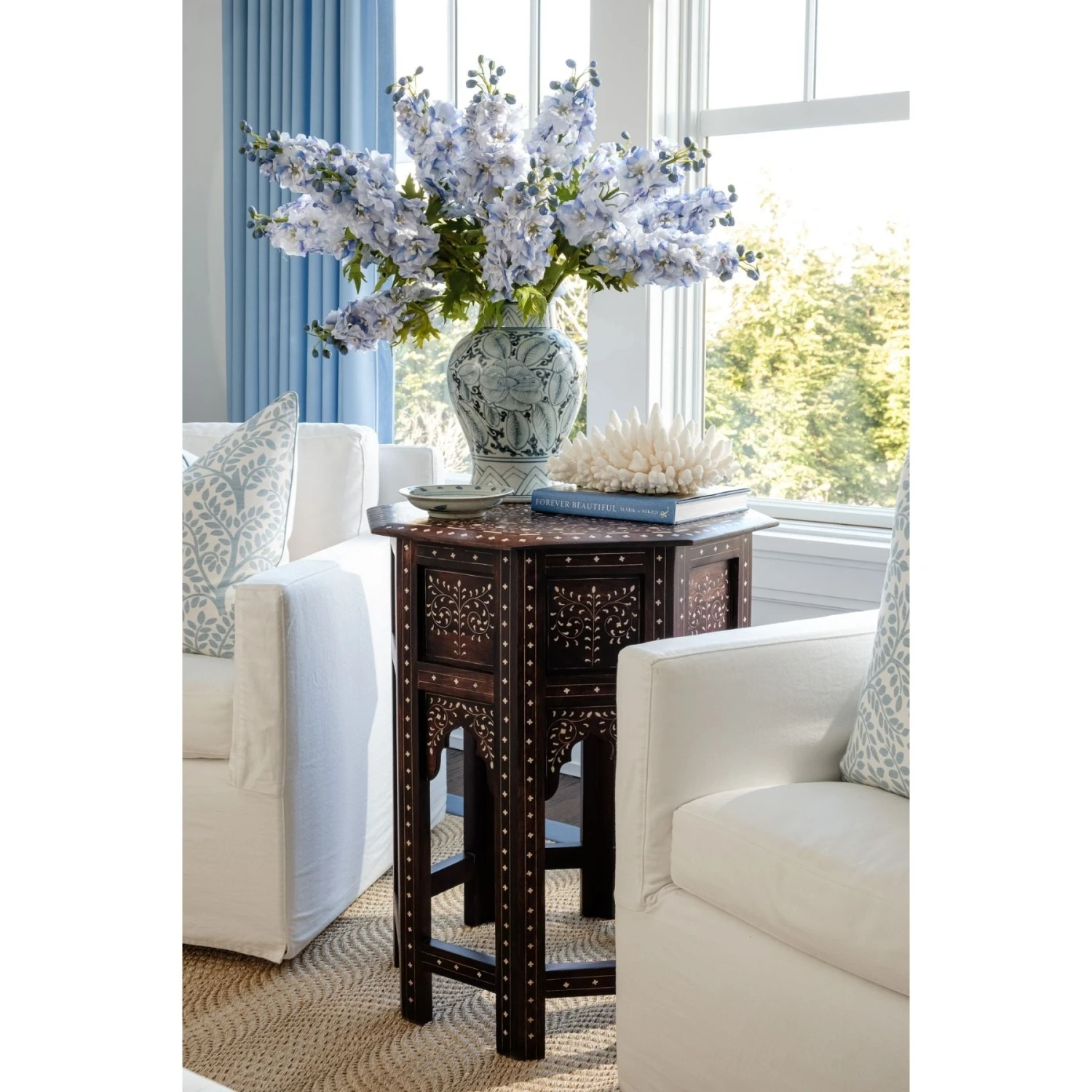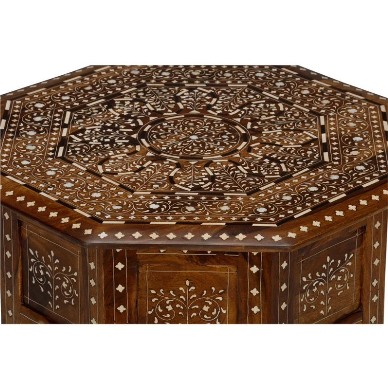 The Anahita Side Table is a work of art that embodies timeless craftsmanship and luxurious detail. Featuring hand-inlaid wood designs inspired by intricate geometric and floral patterns, this piece radiates global sophistication and elegance. Its octagonal shape and elevated details make it a captivating focal point for any room, effortlessly blending beauty and functionality.