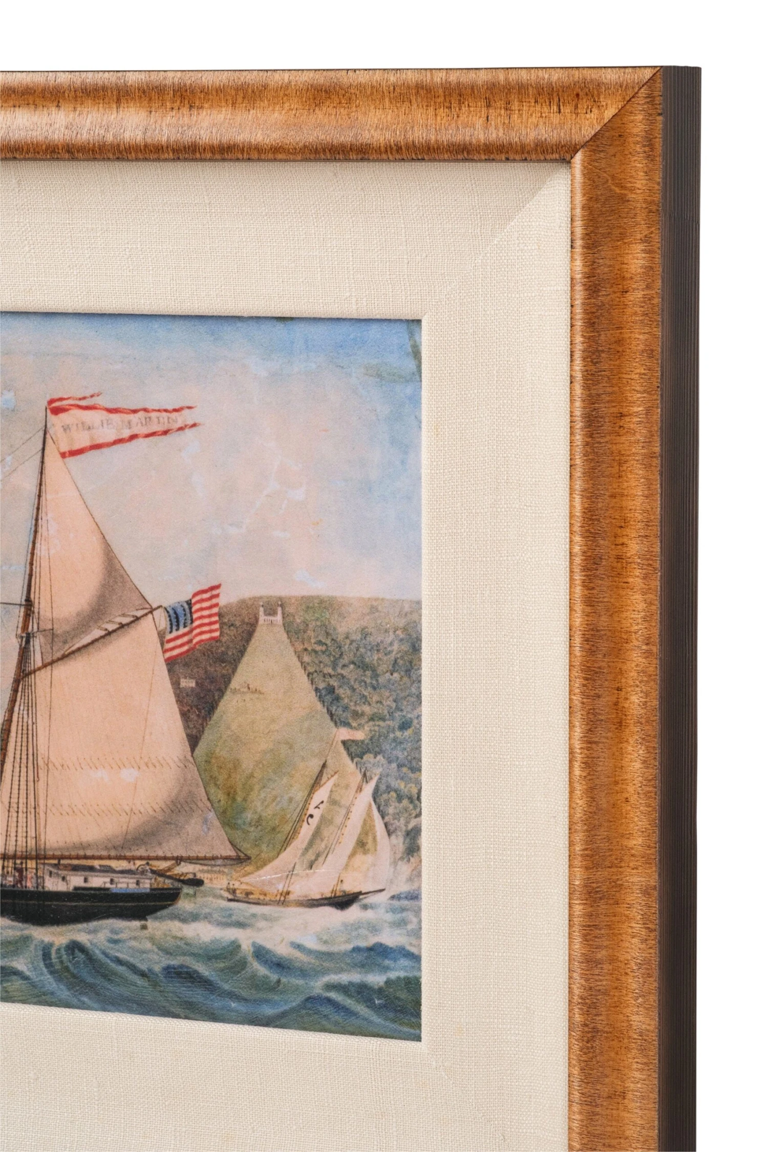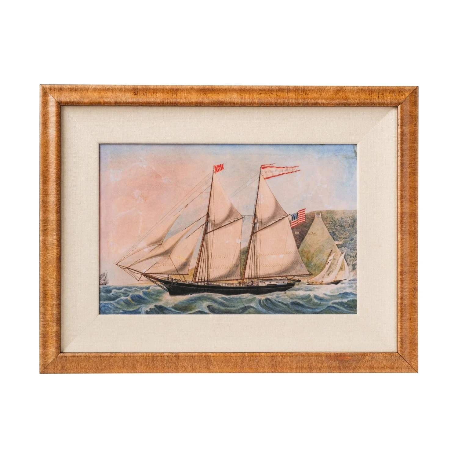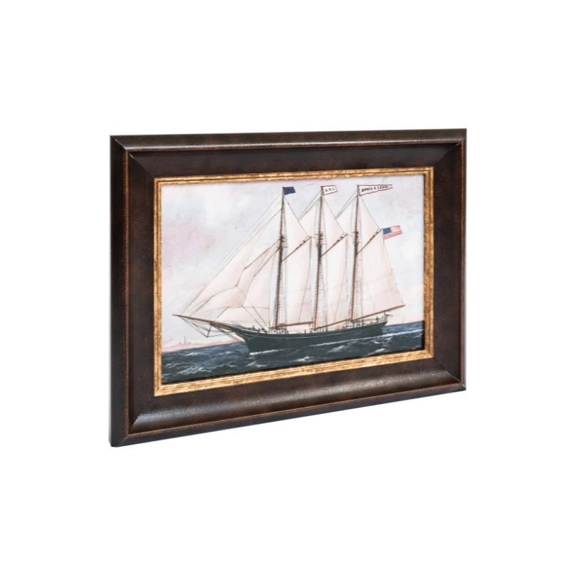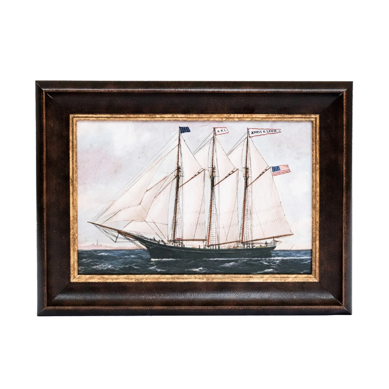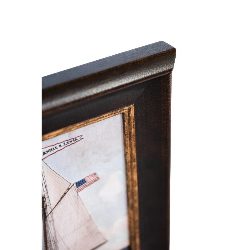 The prints are then hand-embellished with acrylic medium by a resident artist, adding texture and depth creating the look and feel of timeworn artifacts. Finished in custom frames that echoes the frame styles of historical periods, these art pieces bring timeless seafaring charm to any coastal or traditional space.