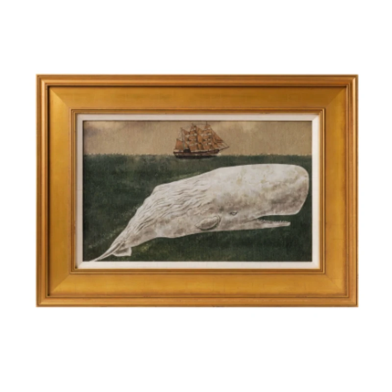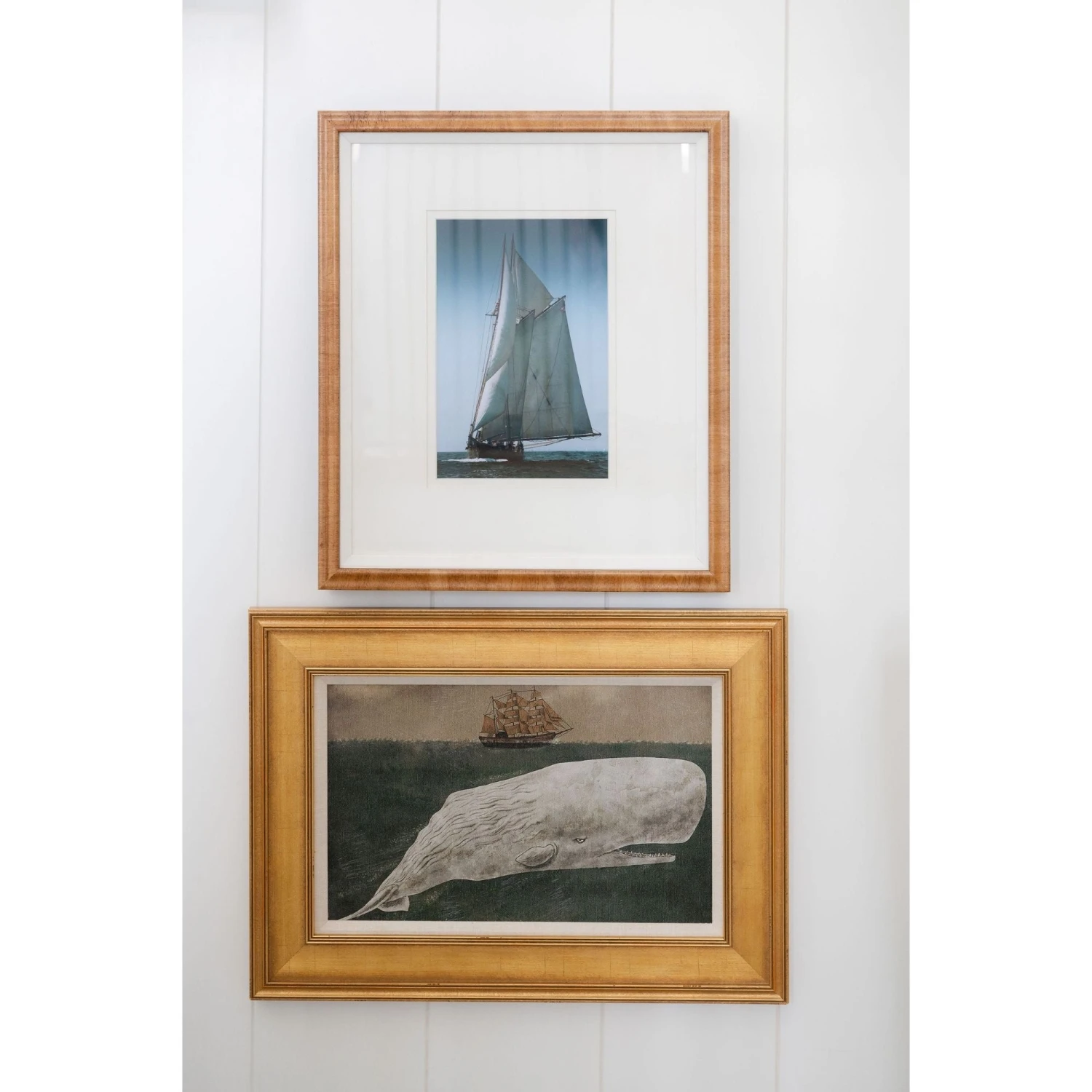 This whimsical, antique-inspired art collection was designed exclusively for our Nantucket Collection, a nod to one of our favorite seaside destinations with a storied whaling history. Each antique whale reproduction is digitally scanned at high resolution to preserve the intricate details and authenticity of the original artwork offering old world charm. The prints are then hand-embellished with acrylic medium by a resident artist, adding texture and depth that make each piece feel one of a kind. Framed in thick gold-painted wood with a flax-hued linen mat that echoes the frame styles of historical periods. The result is a timeless, curated look that blends seamlessly into both traditional and coastal-inspired interiors.