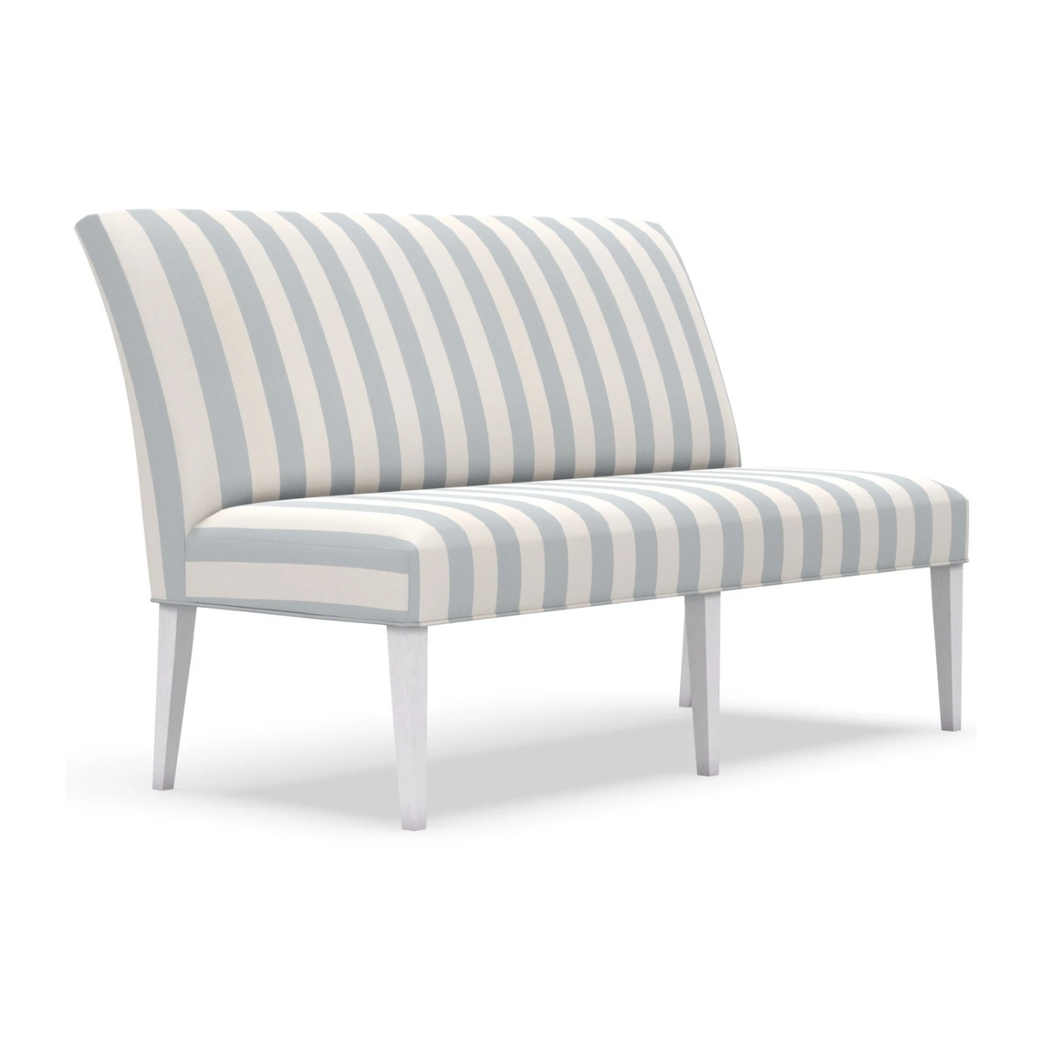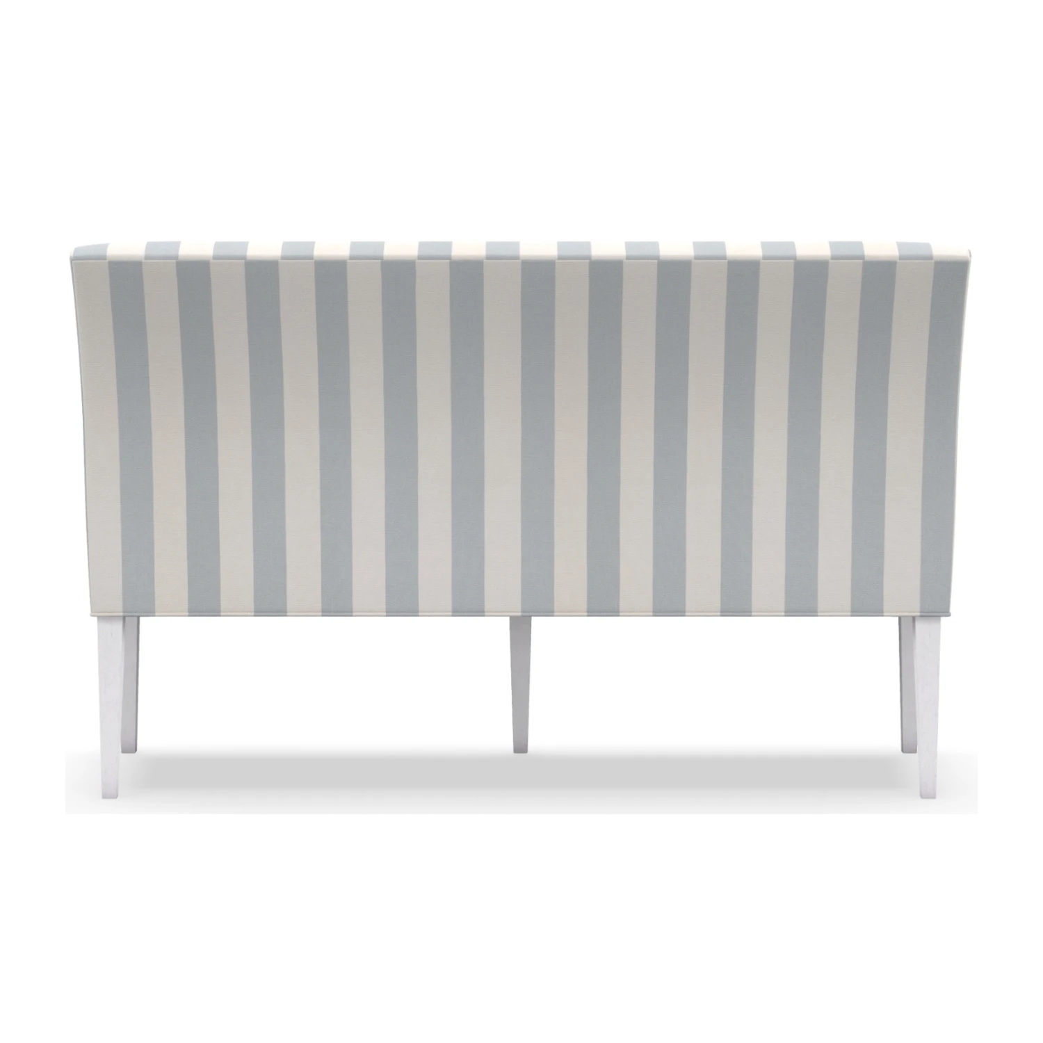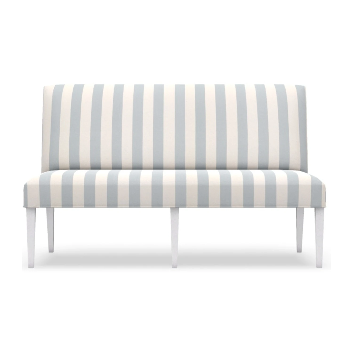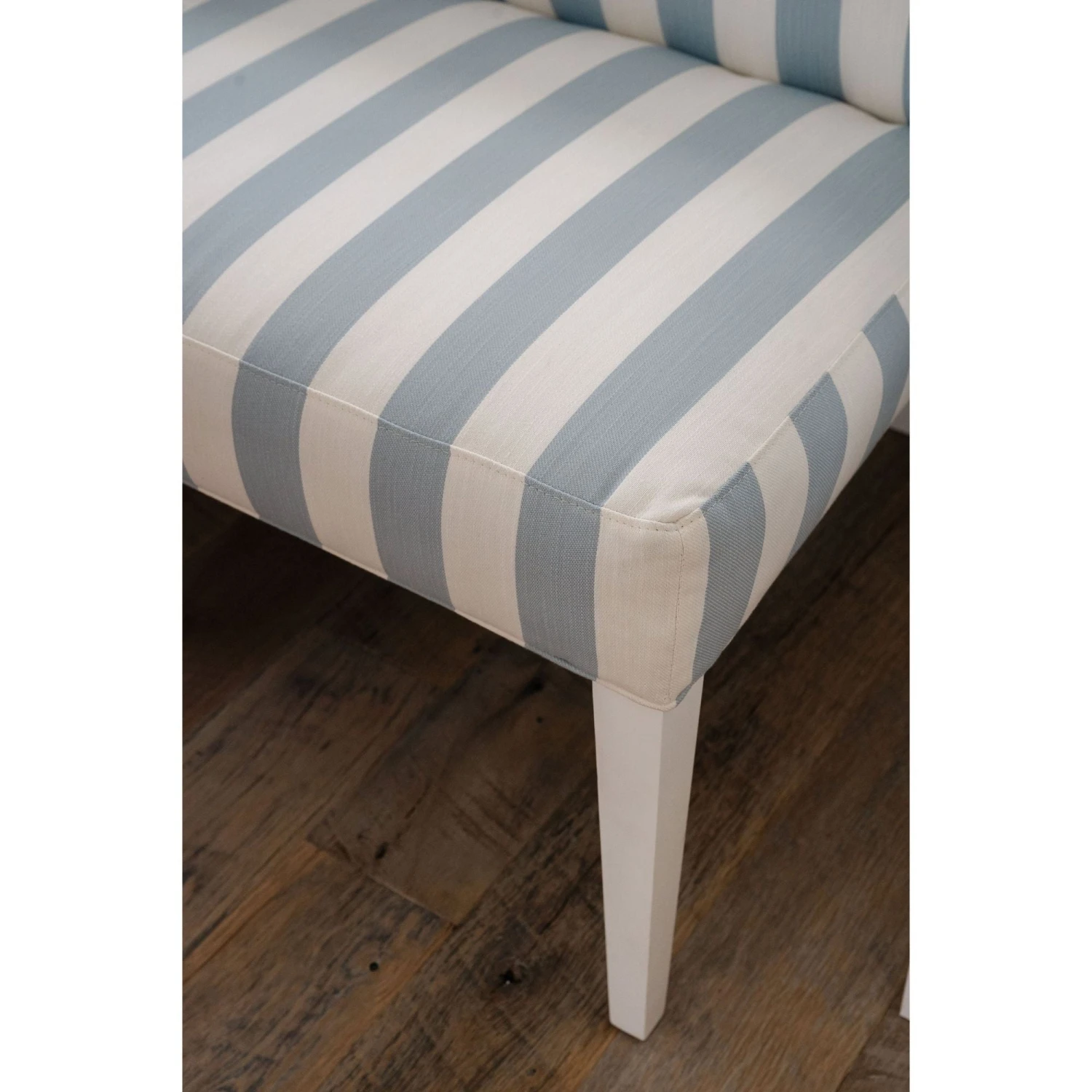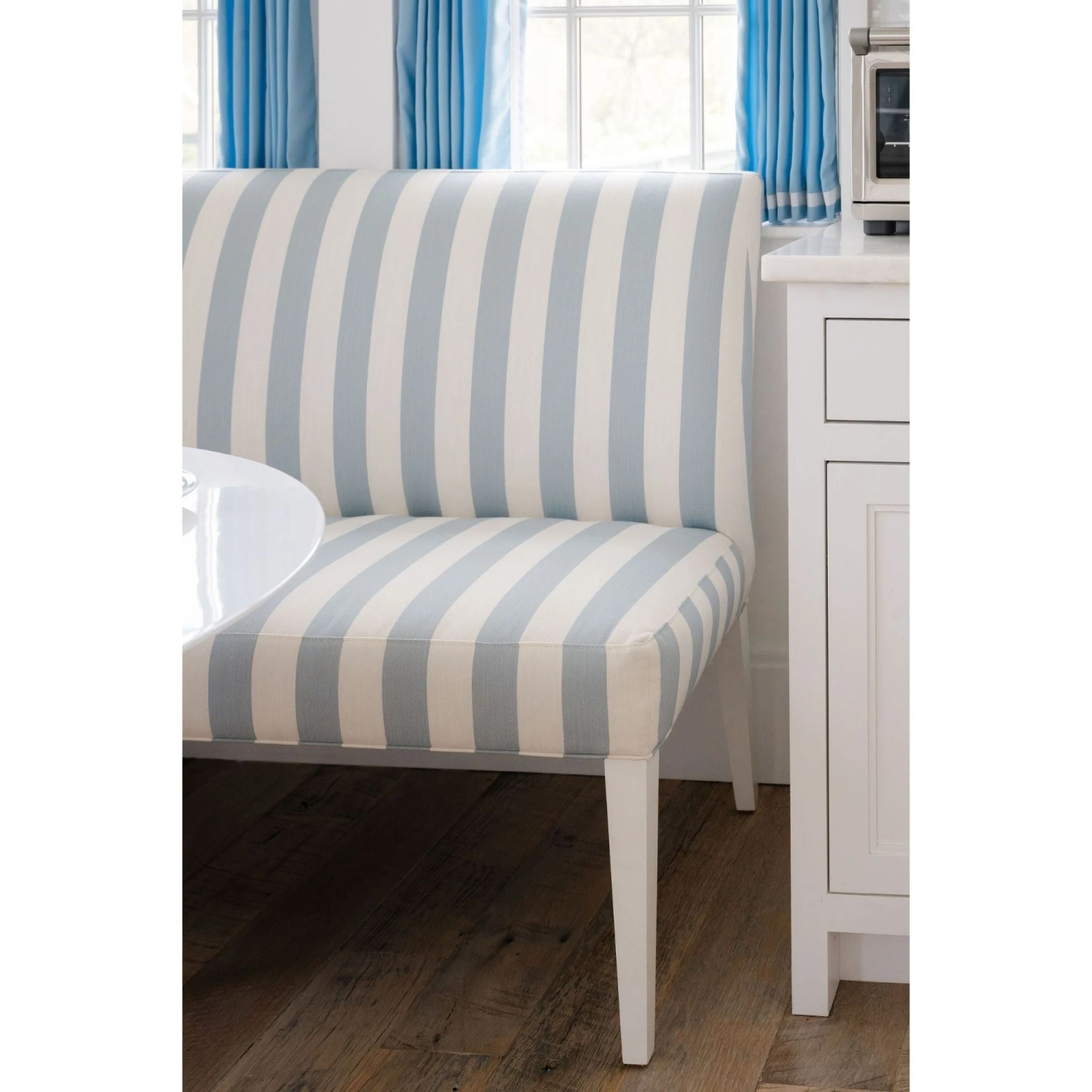 Dine in style with our Ava Dining Banquette. This piece brings both comfort and elegance to your dining space. Designed with sleek ivory wood legs and upholstered in a timeless blue and white cabana stripe performance fabric, it offers a classic coastal look that’s as durable as it is stylish.Â