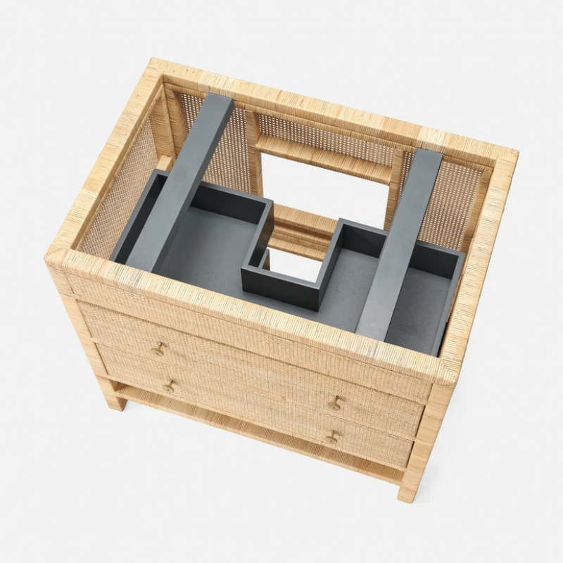 Where natural texture meets timeless design. The Avalon Freestanding Vanity is artisanally crafted from hand-woven peeled rattan in a refined crisscross weave. With its warm, organic tone and subtle variations in the handcrafted knobs, it brings a sense of relaxed luxury to any bath—whether your style is breezy and beachy or polished and tailored. Generous storage and thoughtfully designed cutouts make it as functional as it is beautiful, offering the perfect balance of form and function.