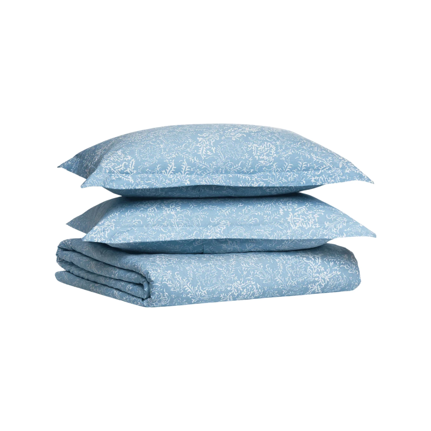 Soft indigo tones and a delicate floral motif lend John Robshaw duvet a refined, romantic feel. Made from breathable, organic long-staple cotton percale, it’s lightweight, airy, and wonderfully soft. Hand-block printed by artisans in India, each piece carries the charm of subtle variation—perfect for creating a serene and thoughtfully layered bed. Shams sold separately.