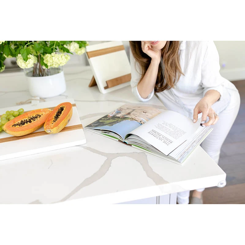 The Bali Cookbook Holder infuses any kitchen with effortless coastal style. Add a pop of color to your countertop with this chic and functional accessory. The white cookbook holder features a contrasting slat, shelf and stand crafted from responsibly sourced, reclaimed wood. Each piece is handcrafted and finished with a food-safe wax.