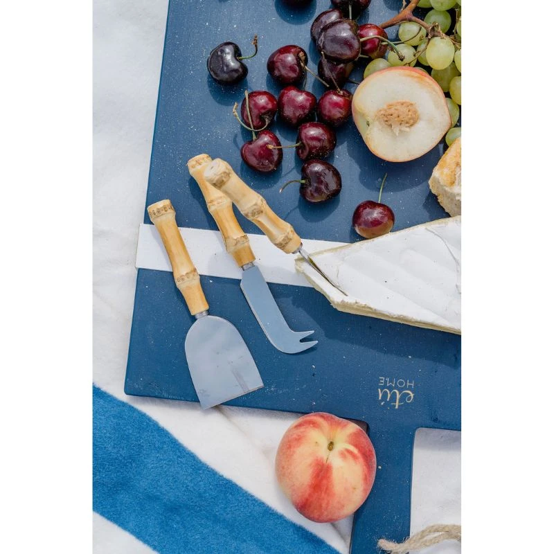 A coastal entertaining essential, our Bamboo Cheese Knives will add sophisticated style to your charcuterie board. Made of stainless steel with a natural bamboo handle, this chic set includes 3 cheese knives. Â