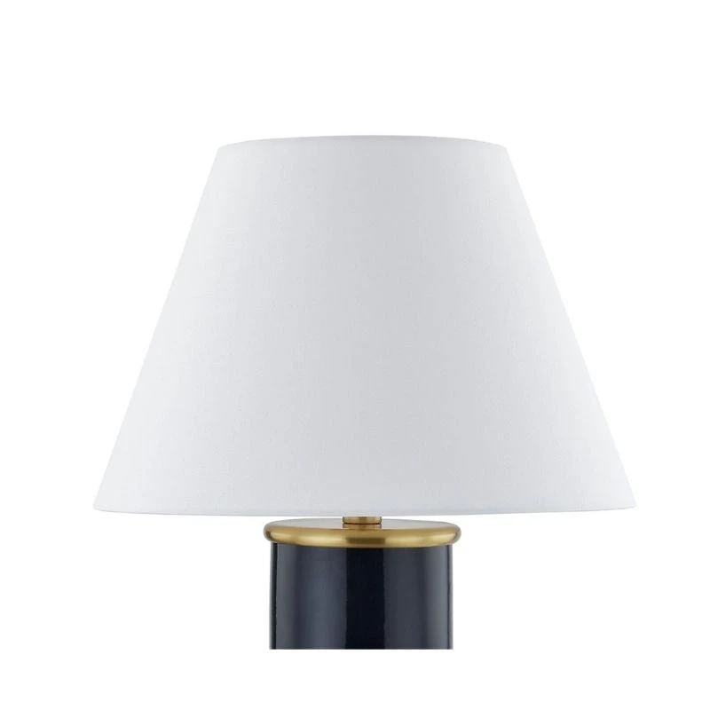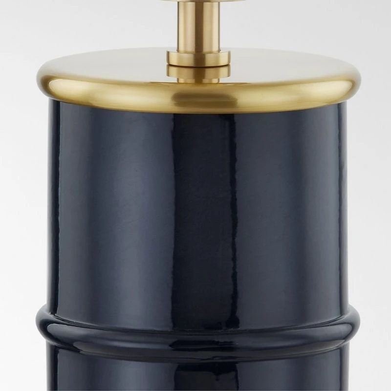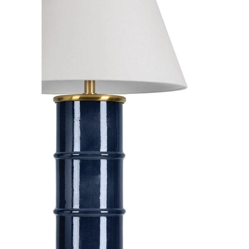 Designed by Ariel Okin, this abstracted bamboo design is reminiscent of Henry Link Bali Hai furniture. Accented with brass, the lamp’s dark navy ceramic base adds color and drama to tabletops without overpowering the space.Â
