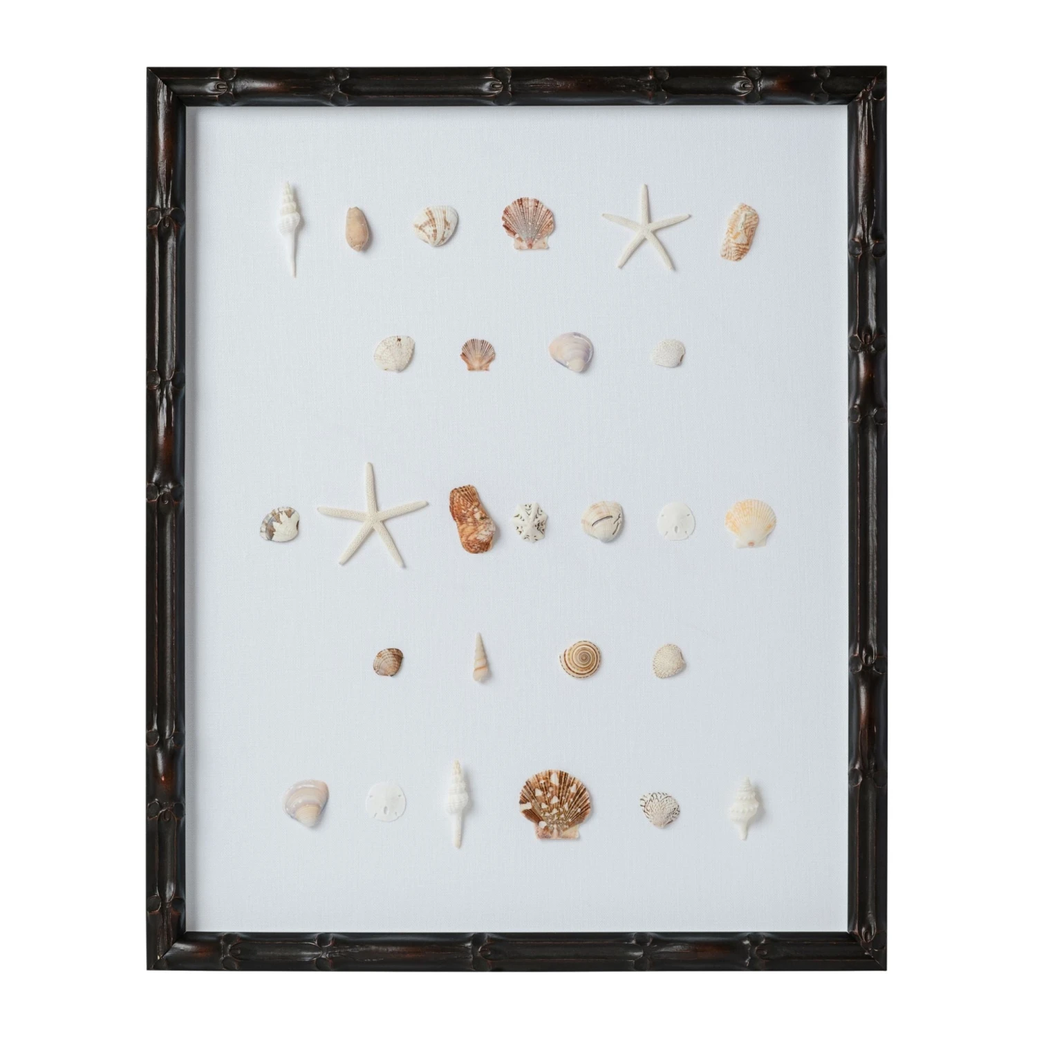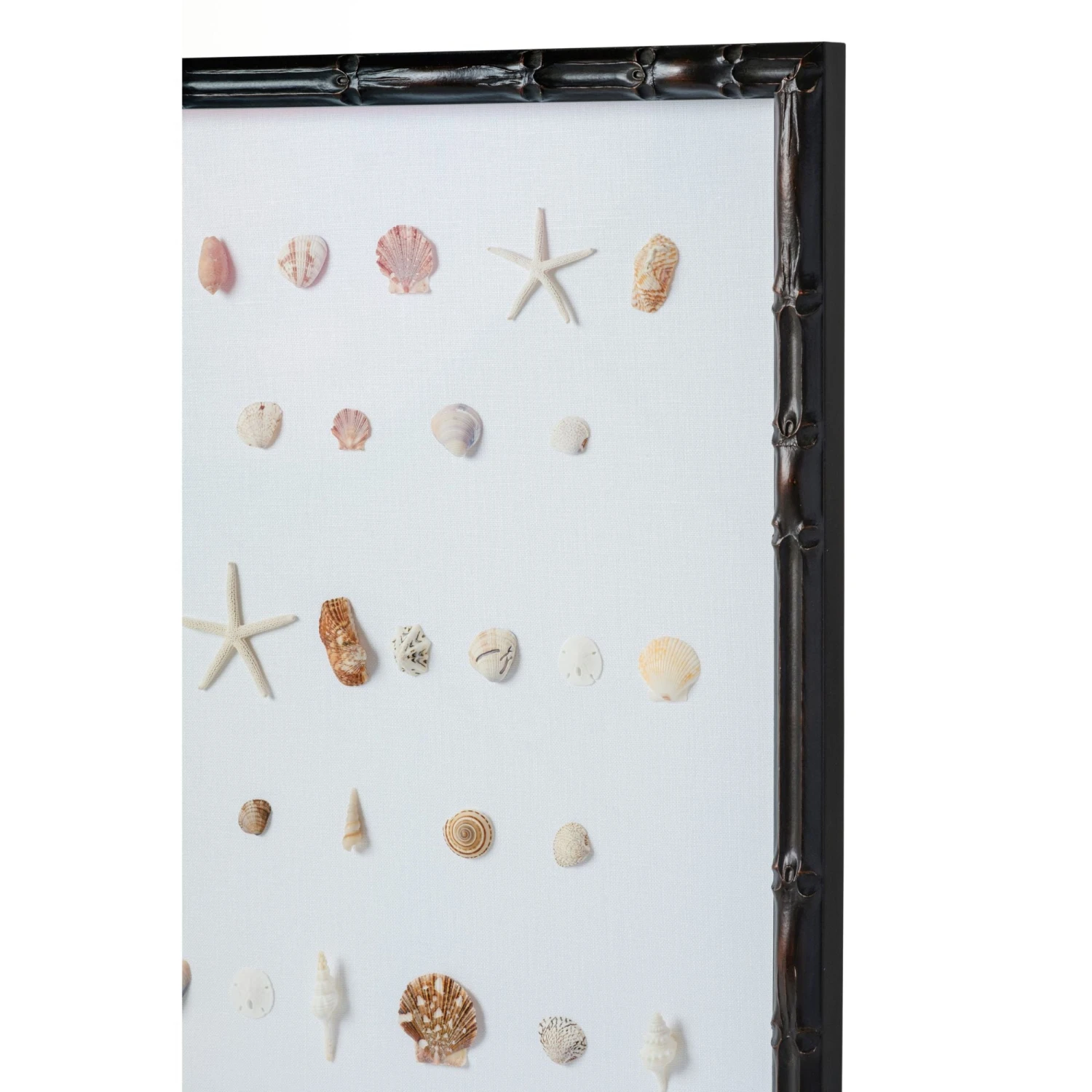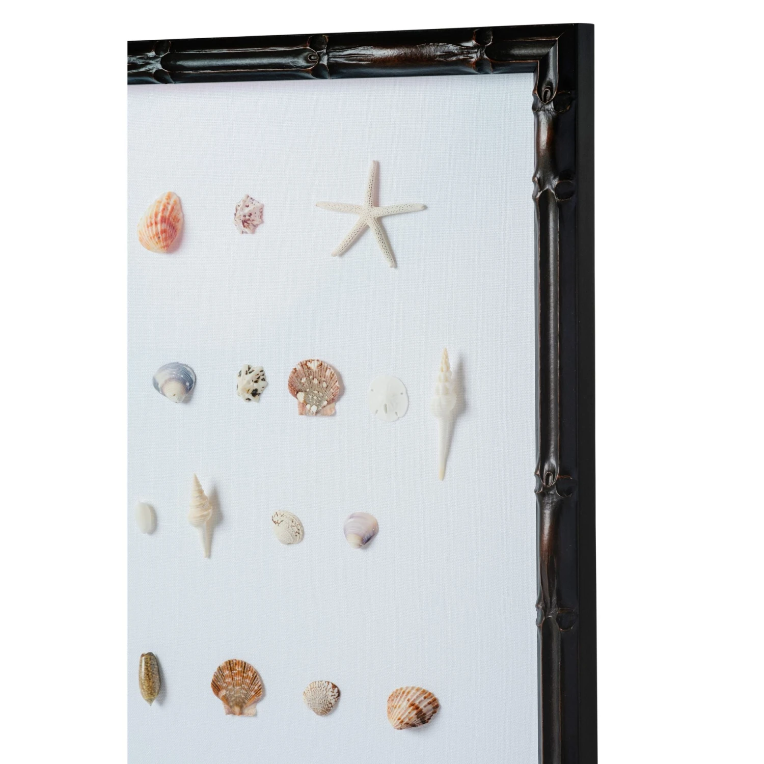 From the depths of the ocean to your walls, capture the beauty of the sea with our latest collection of Bespoke Shell Study Framed Art. Inspired by vintage shell study art, this spectacular piece features curiosities from the sea delicately suspended on white linen backing and framed in a dark walnut faux bamboo frame.Â