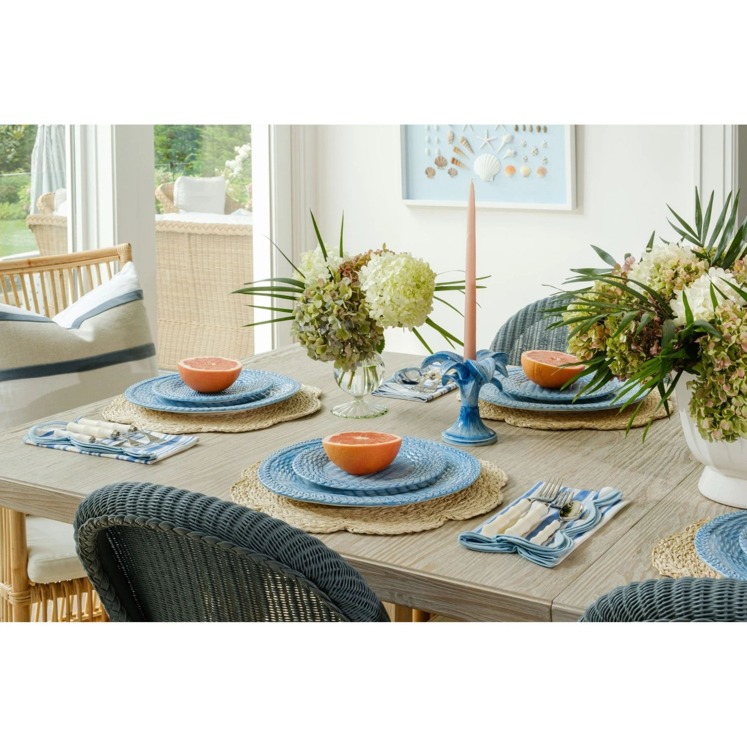 These vintage-inspired porcelain palm tree candlestick holder offers a stylish update to your basic taper holder. Handmade in Italy, each chic taper holder features a distinctive blue wash with visible brush strokes, highlighting its artisanal charm. Perfect for enhancing tables, mantels, and more, these candlesticks add a stylish touch to any space.