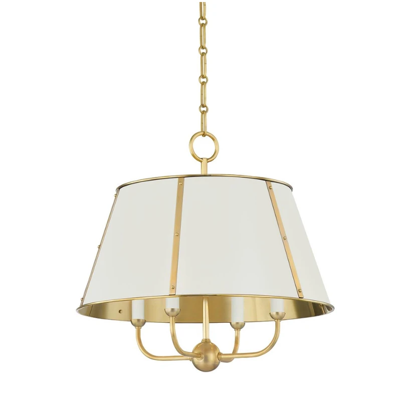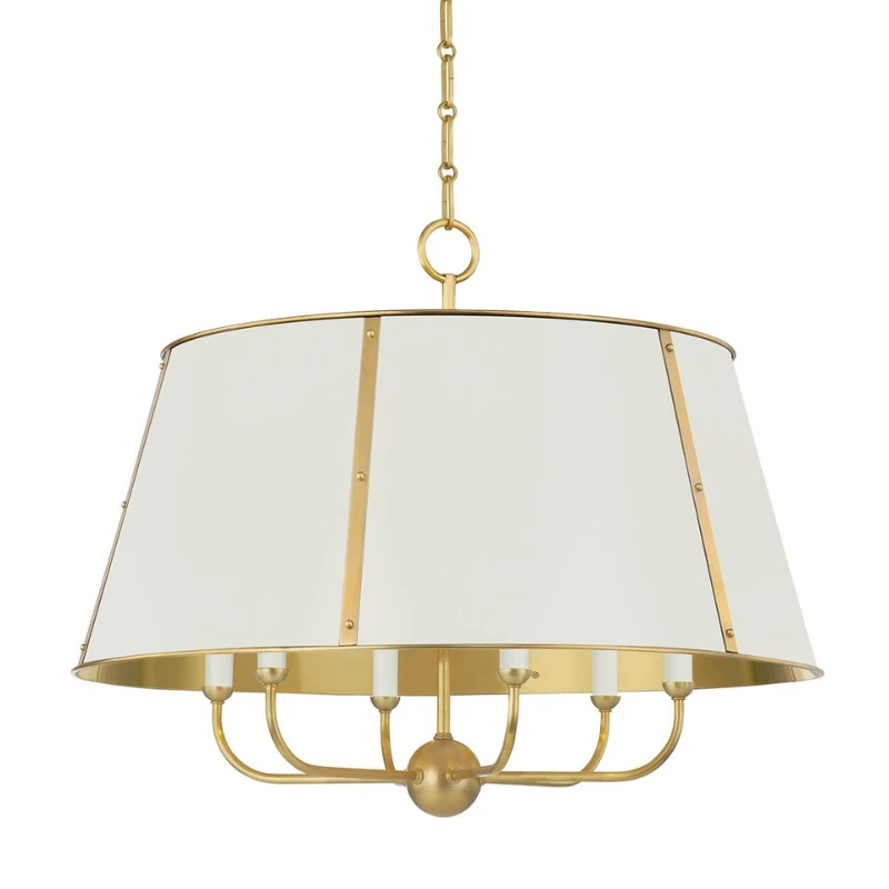 Designed by Mark D. Sikes, this elegant chandelier combines classic form with modern sophistication. The off-white shade is accented with refined gold detailing, creating a timeless silhouette that feels both fresh and familiar. Perfect for adding a touch of understated luxury to any space, this chandelier blends beauty with function for a truly elevated lighting solution.