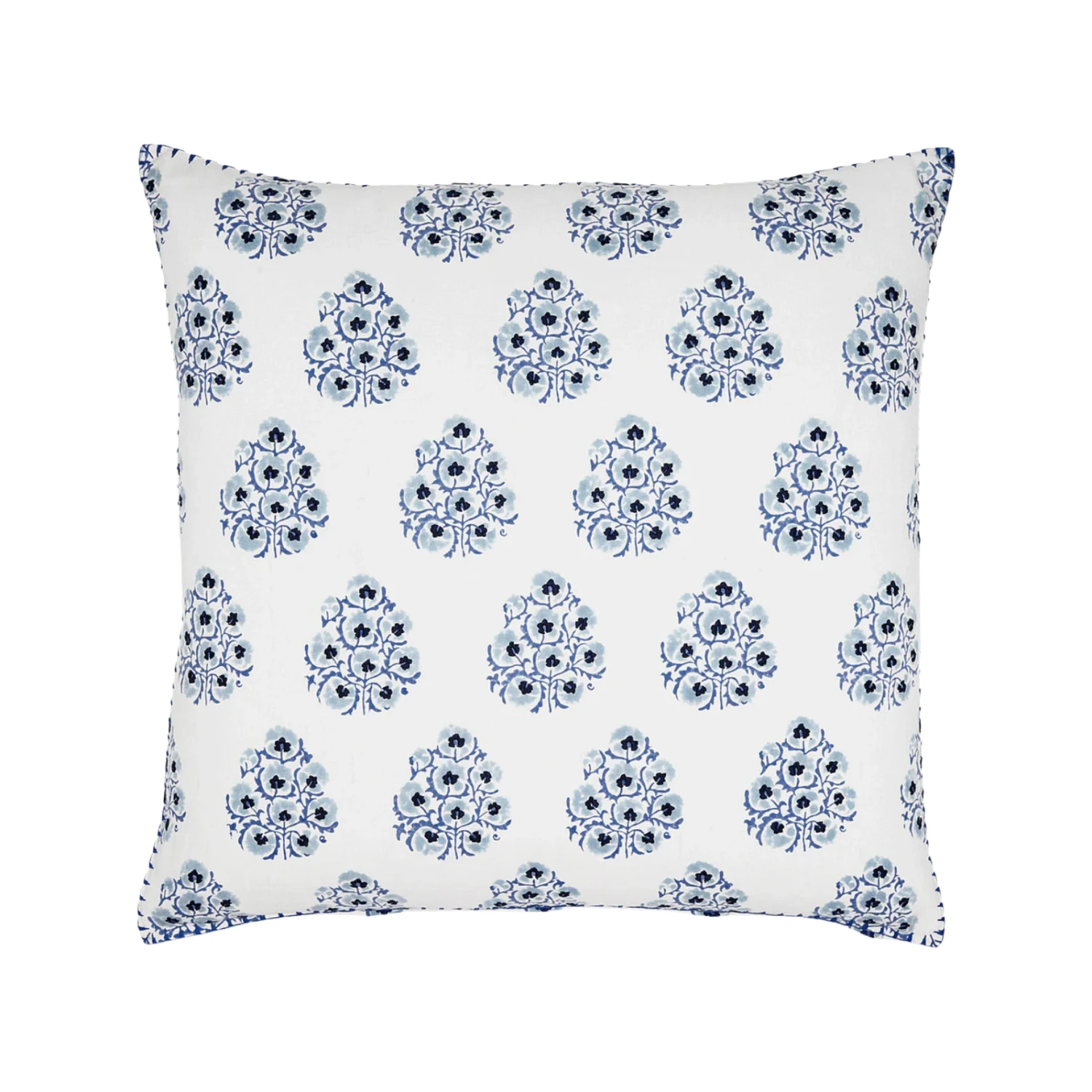 Hand-block printed by artisans in India, this Euro pillow features a symmetrical floral design in soft coastal blues. Made from a breathable blend of linen and cotton, it brings structure and serenity to the bed: perfect for layering with complementary patterns or letting it shine on its own.