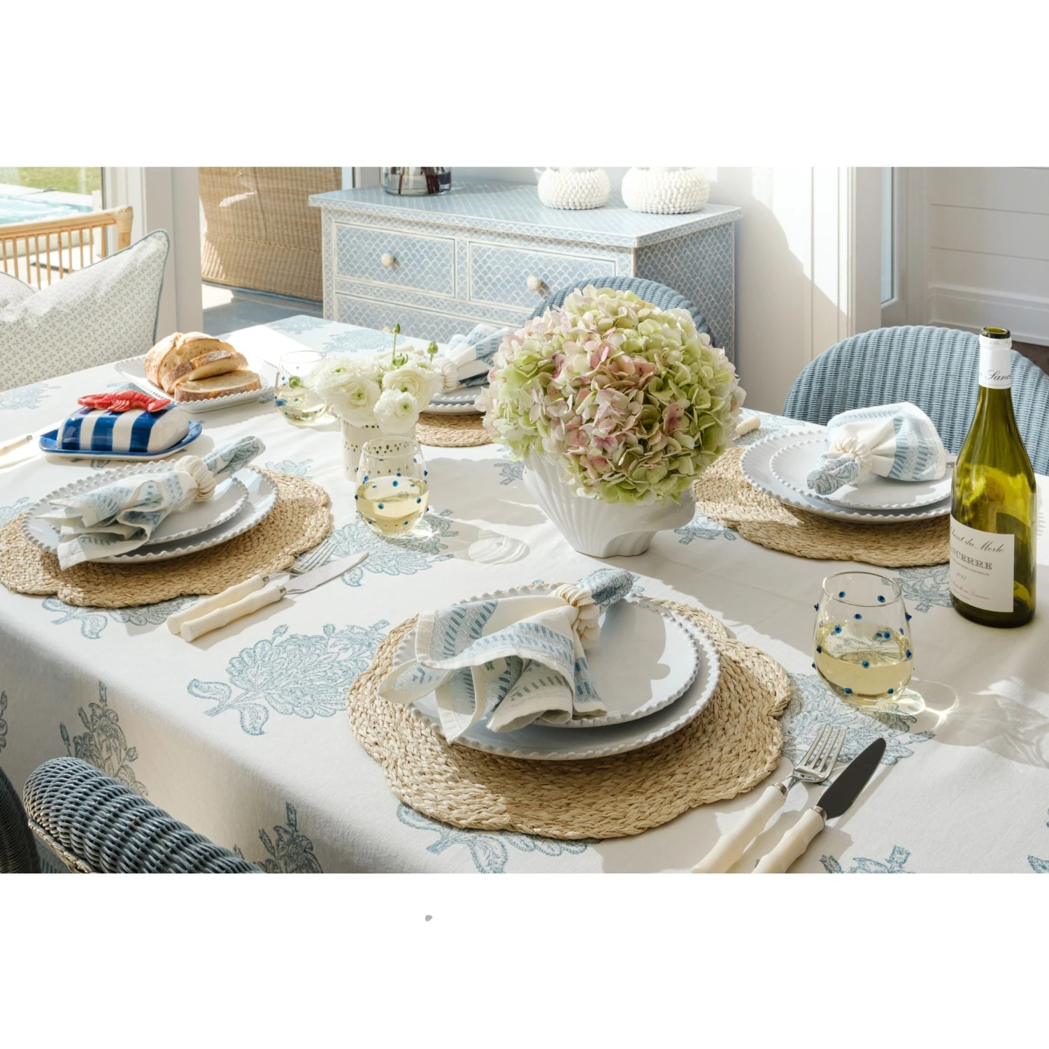 Delicately detailed and effortlessly refined, our Cannes Napkins bring timeless beauty to the table. Featuring a bold botanical motif in a soft blue, they add an elegant yet understated touch to any setting. Made from 100% cotton, they’re as practical as they are beautiful—perfect for everything from everyday meals to special gatherings. Pair them with the matching Cannes Tablecloth for a seamlessly coordinated tablescape.