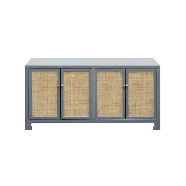 Mid-century modern meets coastal-inspired elegance with the Capistrano Sideboard. This beautiful piece features handwoven caning on each of the four sideboard doors. This natural material makes for a lovely contrast with the crisp, matte gray wood. Constructed from natural materials, the sideboard may have minor variations in color, texture and beauty marks, which enhances its inherent charm.
