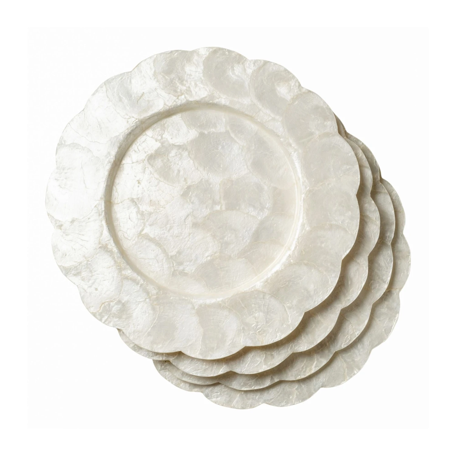 Immerse your table in a sea of elegance with these natural Scallop Capiz Chargers. Featuring a feminine scallop rim and the iridescent shimmer of Capiz shell, these beautiful chargers are sure to add a touch of opulence to your table setting. Perfect for both casual and formal occasions, our Scallop Capiz Chargers effortlessly blend coastal charm with timeless sophistication.Â