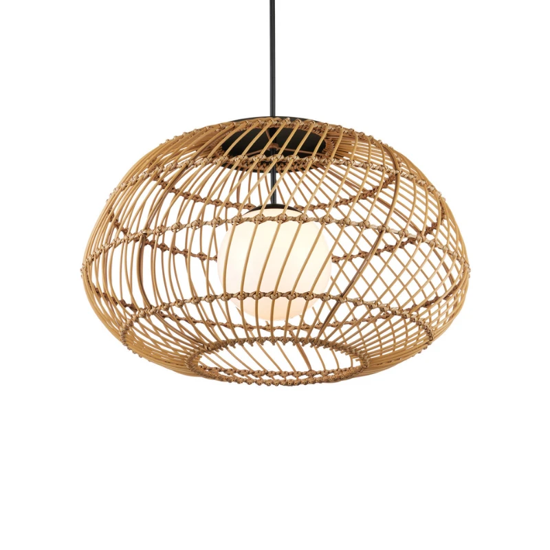 With its graceful silhouette and dynamic woven pattern, the Carriage Outdoor Pendant brings both texture and movement to outdoor spaces. Crafted from all-weather wicker in an open-weave design, its melon-shaped shade mimics the soft spin of a turbine, adding a sense of energy and flow. Finished with durable, black powder-coated hardware, this piece is built to withstand the elements while offering a refined, coastal aesthetic. Wet-rated for outdoor use, it’s the perfect statement for porches, patios, and al fresco entertaining spaces.