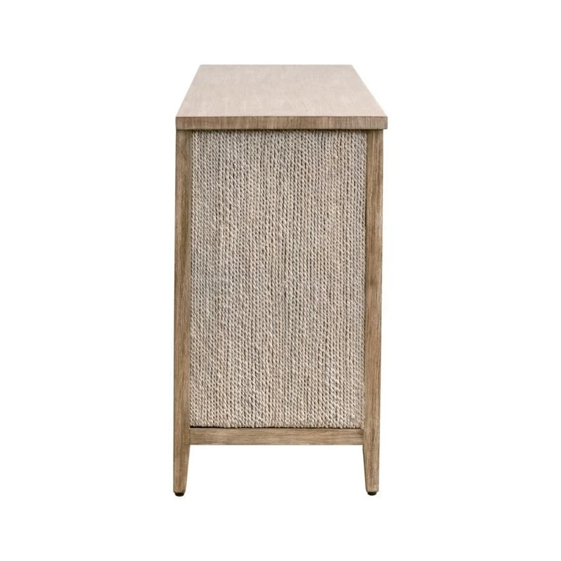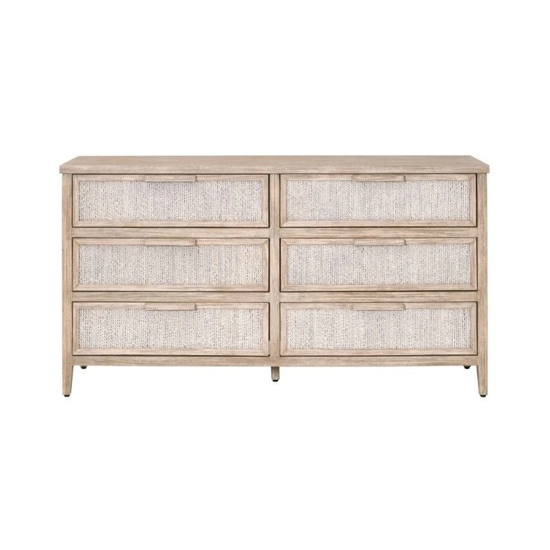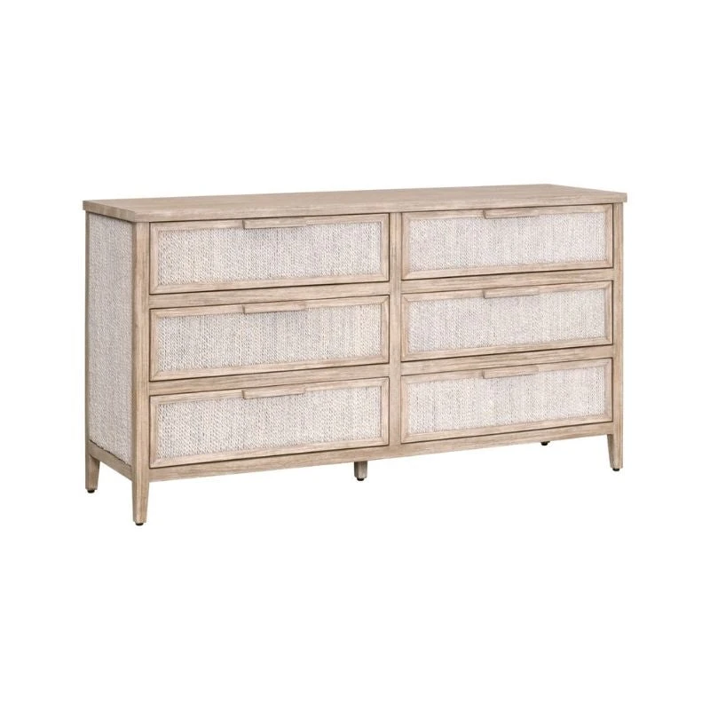 Introduce a touch of artisanal elegance to your home with the Cebu Dresser, an exquisite storage solution that marries form with function. This dresser is a celebration of natural beauty, featuring bleached wood construction and a surface hand-wrapped in natural abaca rope with a whitewash finish, making it a perfect fit for serene lake houses, breezy beach homes, or any space that appreciates a coastal look.