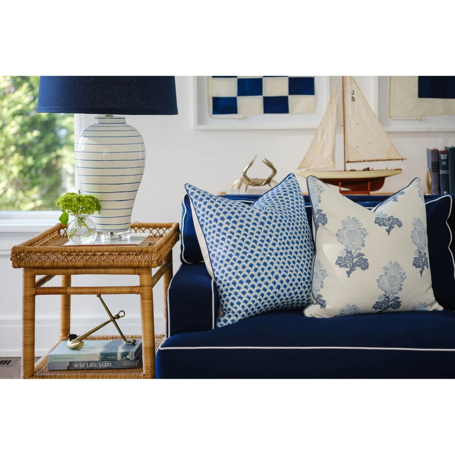 The Darien Rattan Double Side Table is made from natural materials, so there may be minor variations in color and texture from one piece to the next. It can be used on its own or with coordinating pieces from the collection, including the narrower Darien Rattan Single Side Table as well as the Darien Rattan Console Table.
