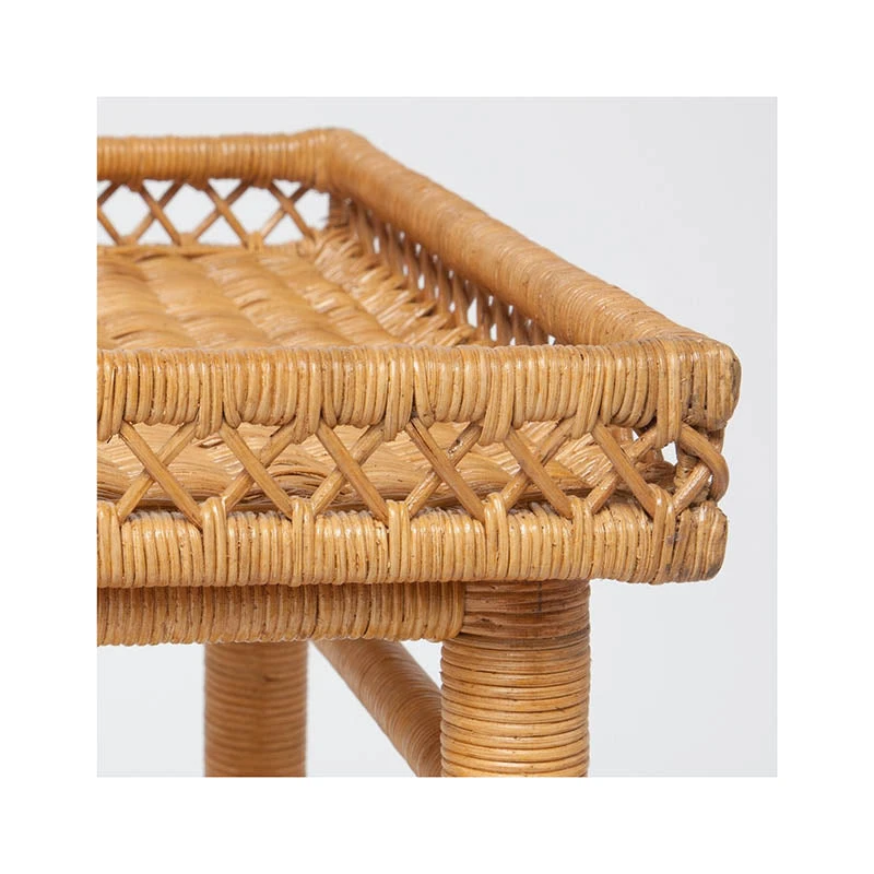 Meet our stylish Darien Rattan Side Table. The tightly woven and intricate rattan details of this tray-style side table adds texture and sophistication to any space. This beautiful side table also makes an ideal nightstand.