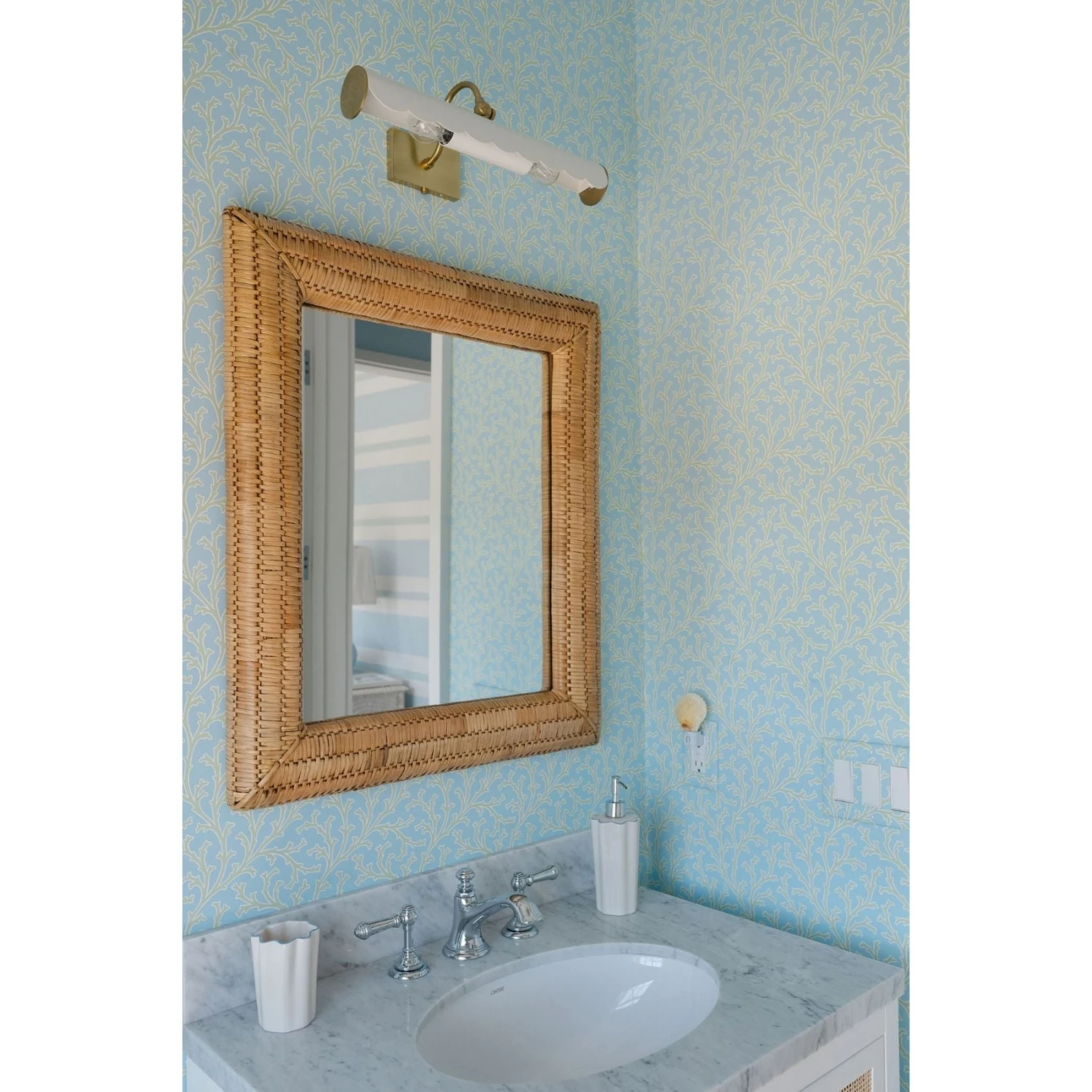 Highlight artwork, photos or other wall décor with this feminine plug-in picture light designed by Ariel Okin. A new traditional take on the classic design, Fifi features a sweet scalloped edge, brass accents and curved arm that adds warmth and feels fresh. Fifi is available in three sizes to fit any space.
