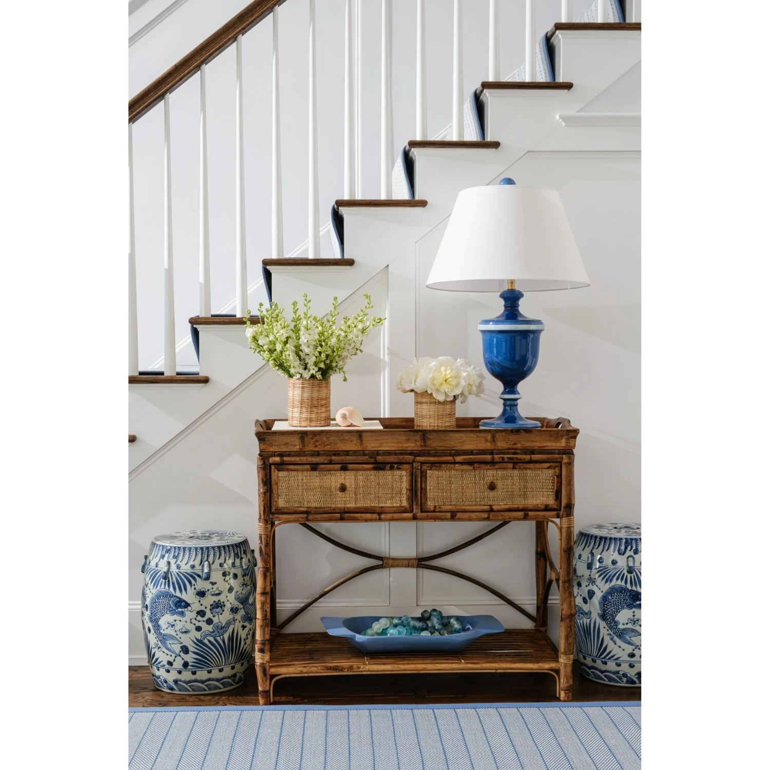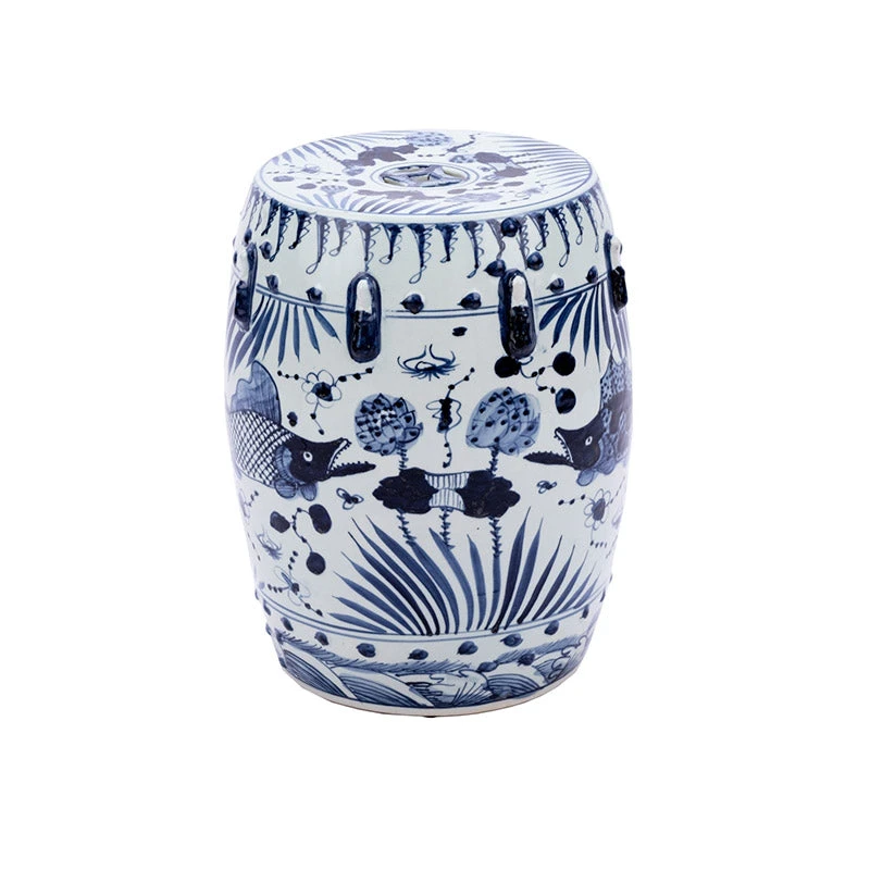 This beautiful garden stool features a fish motif illustration, perfect for the coastal home. It can be used in any room to serve a functional purpose – as an end table or for extra seating – or simply for decor. We like to style garden stools with a small tray or books set on top.