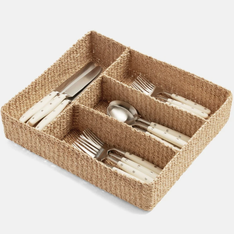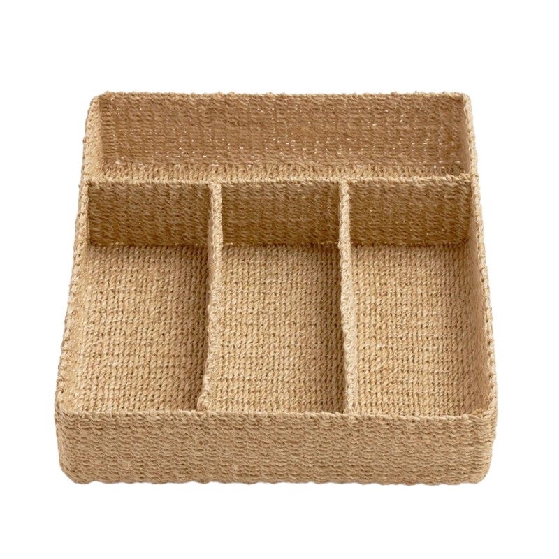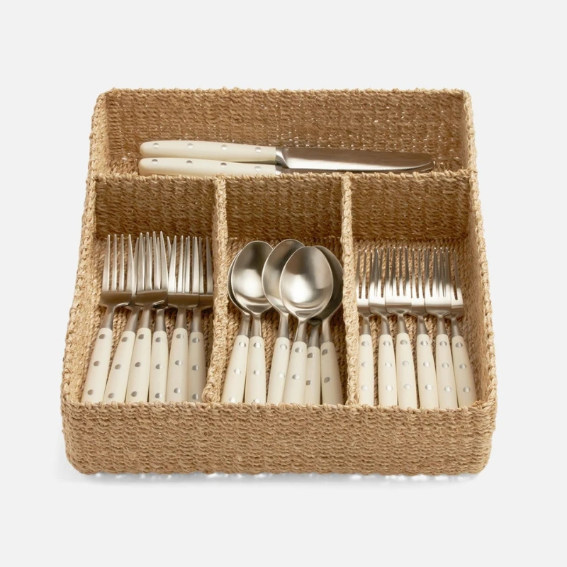 Keep your tabletop, buffet, or drawers, well-organized with our stylish Folly Flatware Holder. Hand-woven using natural abaca fibers, use as stylish storage for your flatware, or as a flatware organizer for hosting buffet style meals!  Pair with our Folly Wine Caddy and Glassware Holder to complete the look.