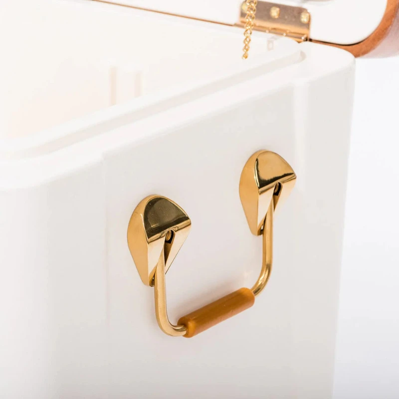 Where timeless design meets practical elegance. Inspired by mid-century European style, the Hemingway Cooler features a durable Roto-Molded shell for maximum insulation, keeping drinks perfectly chilled from the beach to the pool. The acacia wood lid doubles as a tabletop, and the detachable cushion offers extra comfort for impromptu seating. Finished with polished brass hardware and thoughtful details, it’s your go-to for elevated summer entertaining.