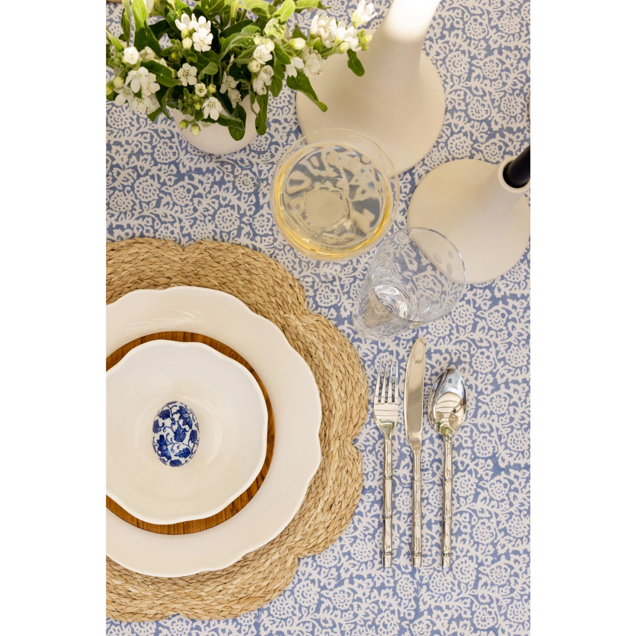 Our Hope Ranch Scallop Placemats will add coastal charm to your tablescape. Handmade from natural woven bleached raffia with a beautiful scallop detail, these casually chic placemats are great for al fresco dining.