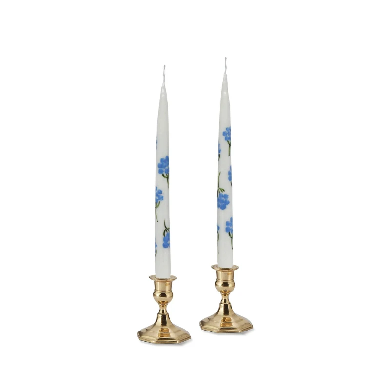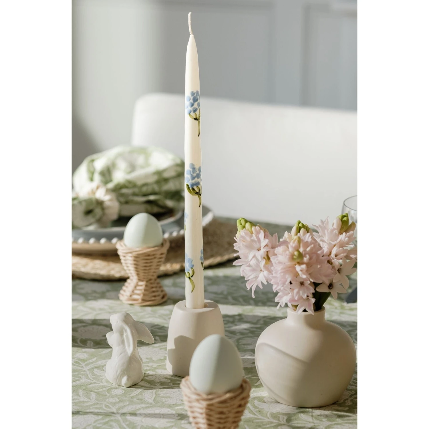 Decorated with our favorite flower, the hydrangea, this set of 2 taper candles adds a beautiful touch to any table or mantel. Each candle is handmade, featuring delicate blue hydrangea blooms for a fresh, elegant look. As these are handmade, there may be slight variations in color, size, and shape, making every piece one of a kind. Each candle burns for 5-6 hours, perfect for your next gathering.