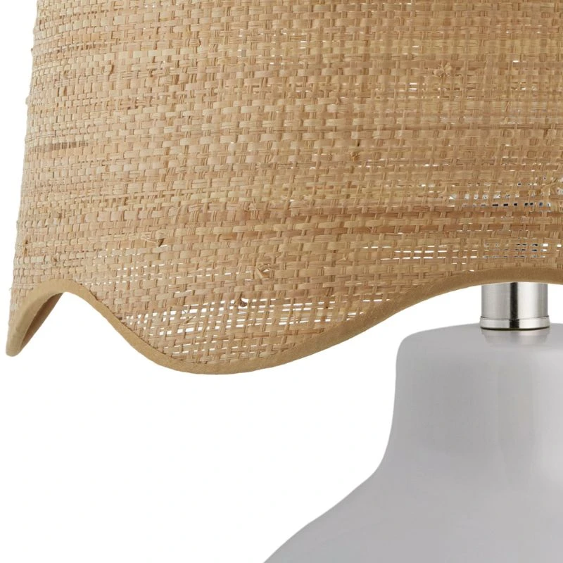 Illuminate your space with our versatile Isla Table Lamp. Crafted with a stunning ceramic base, this piece transcends style and will compliment any surface or room. Choose from a natural rattan or white linen scallop shade to make this lamp best compliment your space. The subtle scallop design adds a modern twist to this timeless classic style.