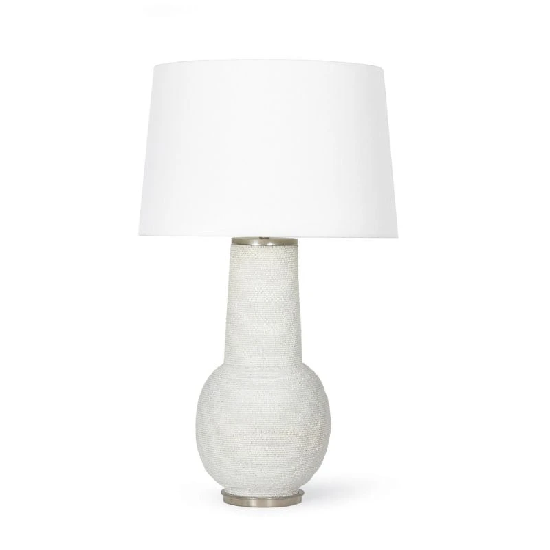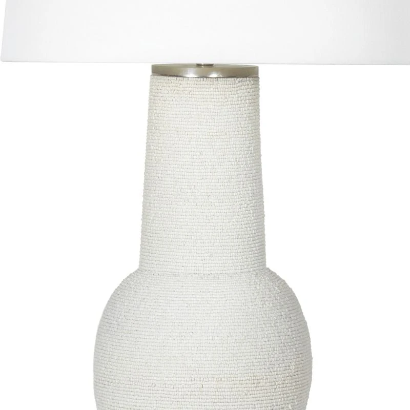 Chic and playful, the Liza Table Lamp features a textured surface of meticulously strung matte white beads wrap around its base, adding striking details that will elevate any decor style. Place the Seychelles in an entryway, living room or bedroom for visual interest.