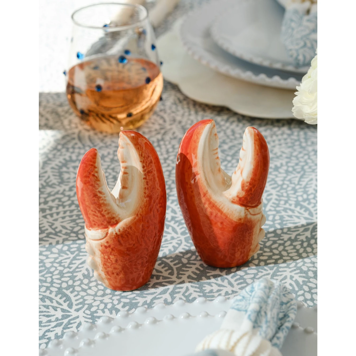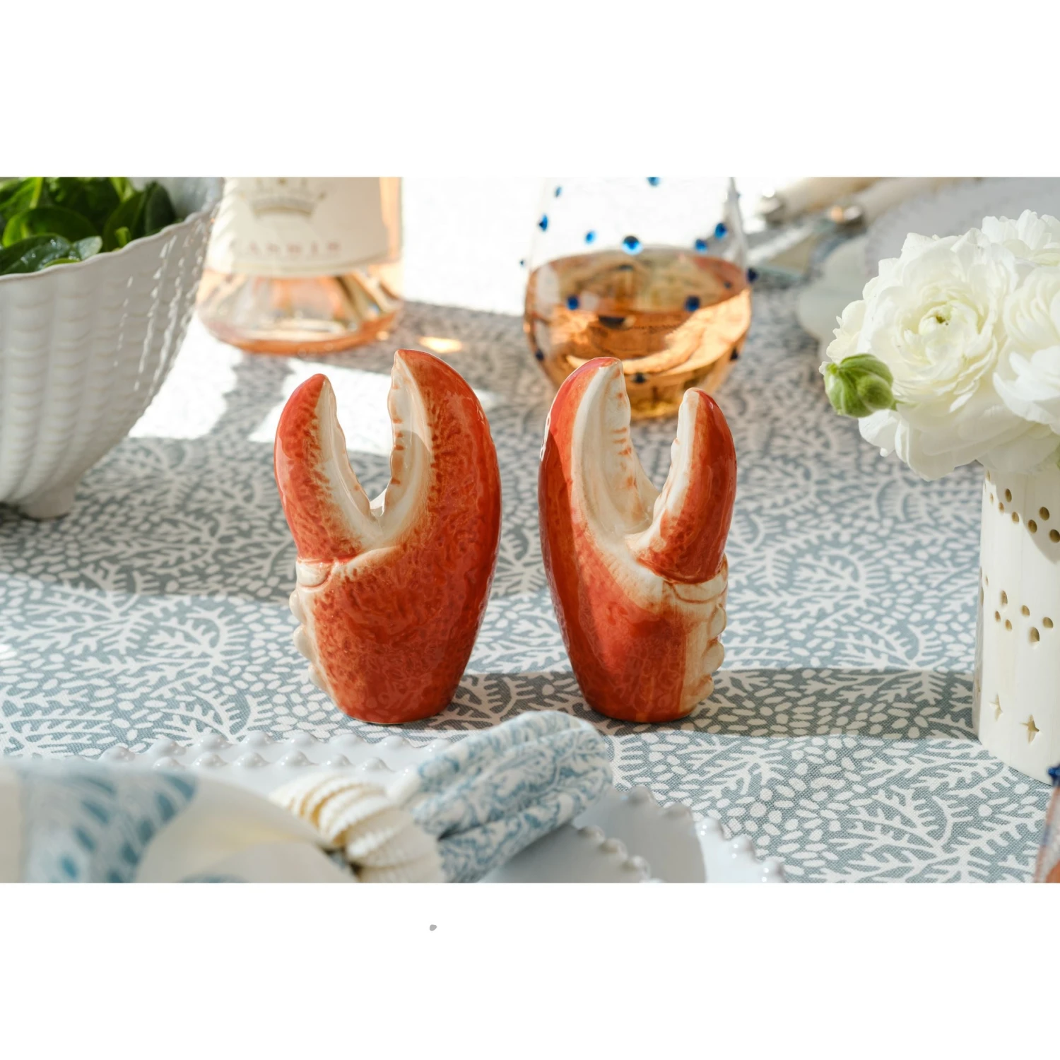 This salt and pepper shaker set brings personality & charm to the table. Crafted from porcelain and designed to resemble lobster claws, they add just the right amount of whimsy while still feeling refined. Perfect for a clambake, a casual summer gathering, or everyday meals, they make even the simplest moments feel a little more special.