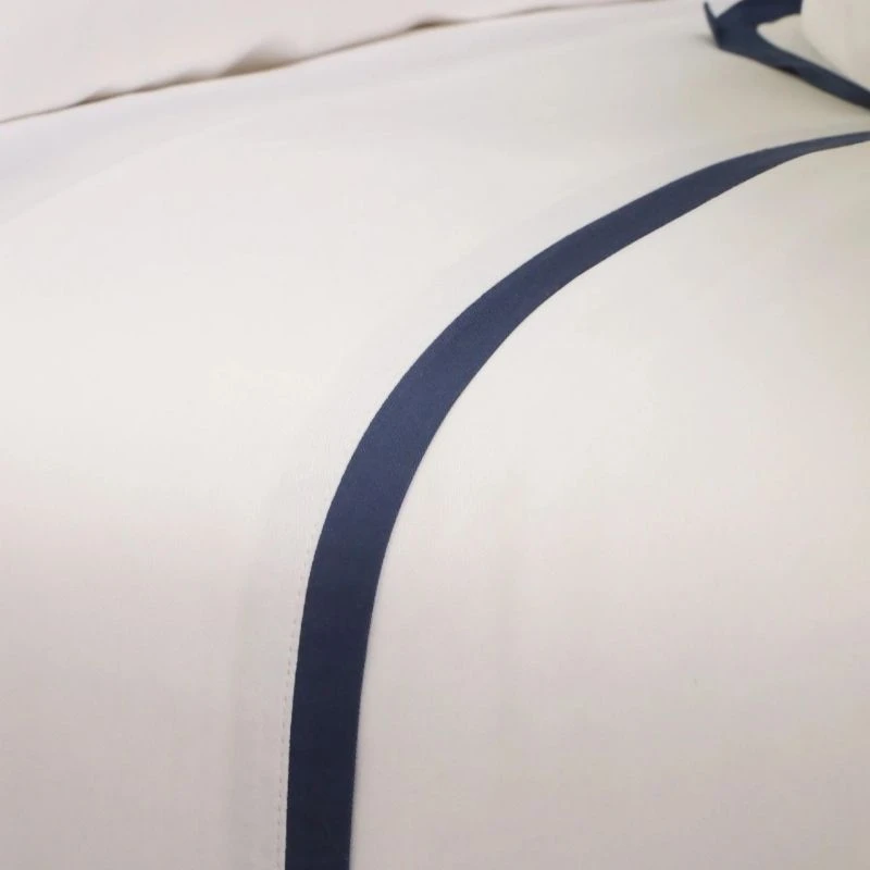 Stay in bed all day with the softest sheets you have ever felt! Tailored and refined with a soft, silky feel, the Longshore Bamboo Sateen Sheet Set is accented with a classic 3/4” navy flange. These luxurious sheets are naturally breathable and hypoallergenic.