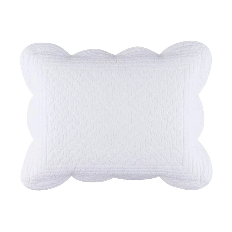 Our Marseille Scallop Sham is the perfect companion to our Marseille Scallop Quilt.  Scalloped edges border crisp, concentric channels of stitching, comforting, cottony and cozy. This timeless and feminine quilt makes the perfect foundation for an all white bed.
