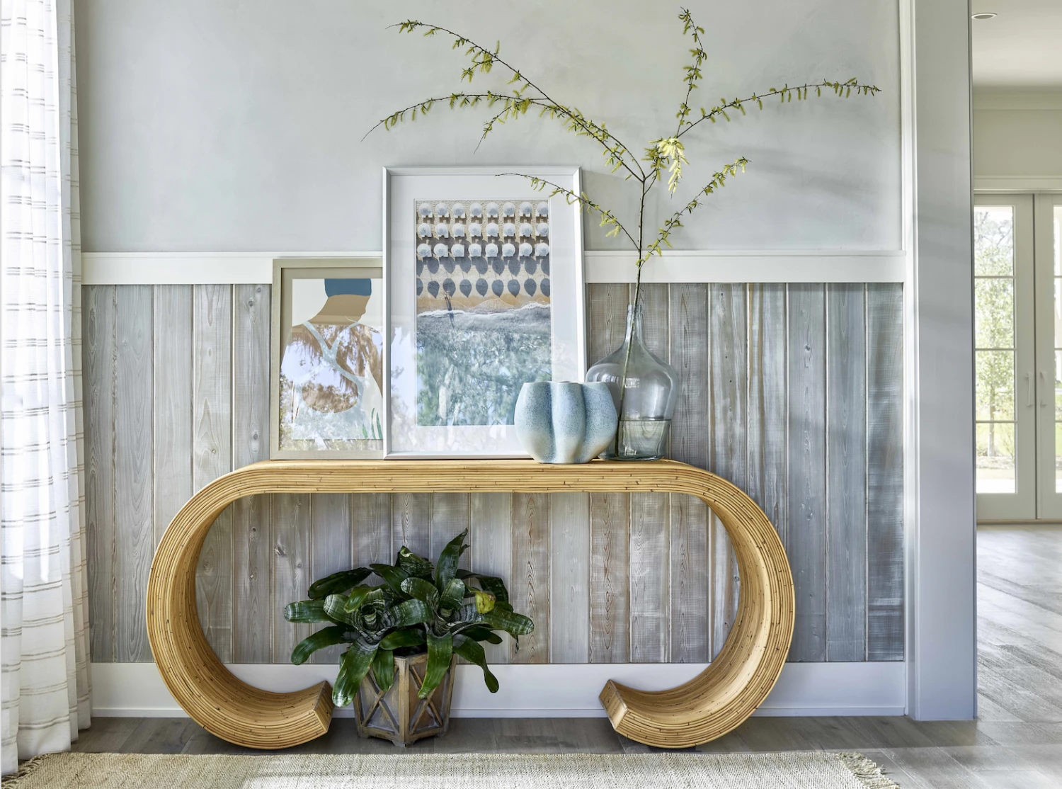 A truly unique statement piece, the Maui Console Table celebrates texture and form with a layered natural rattan body and a delightfully curved base.