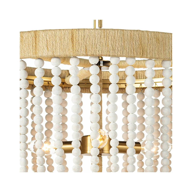 Our Milos Beaded Chandelier combines natural tones and textures for an eclectic and layered fixture. Its white strung beads and rattan-wrapped frame and tassel creates an airy coastal feel, but would also be at home in a modern farmhouse or cottage.