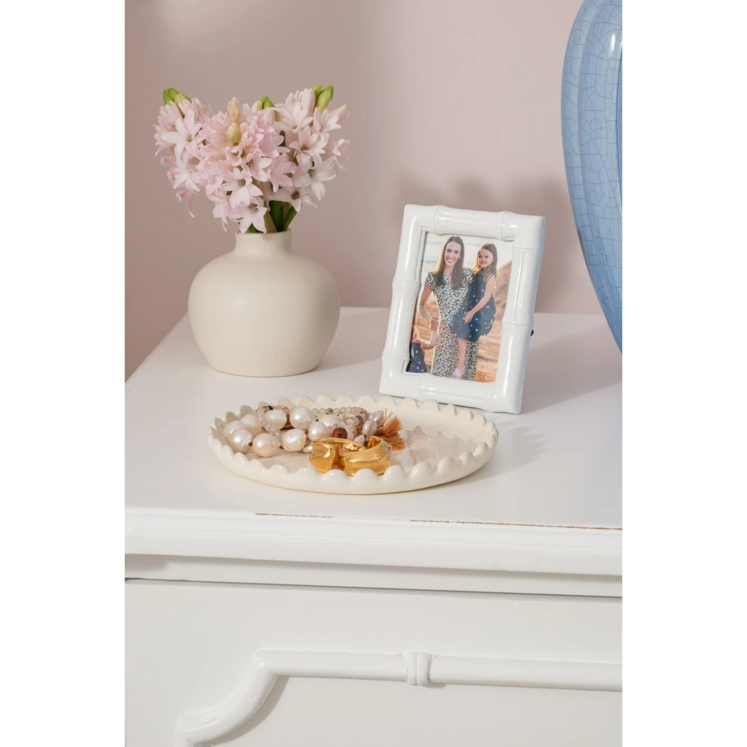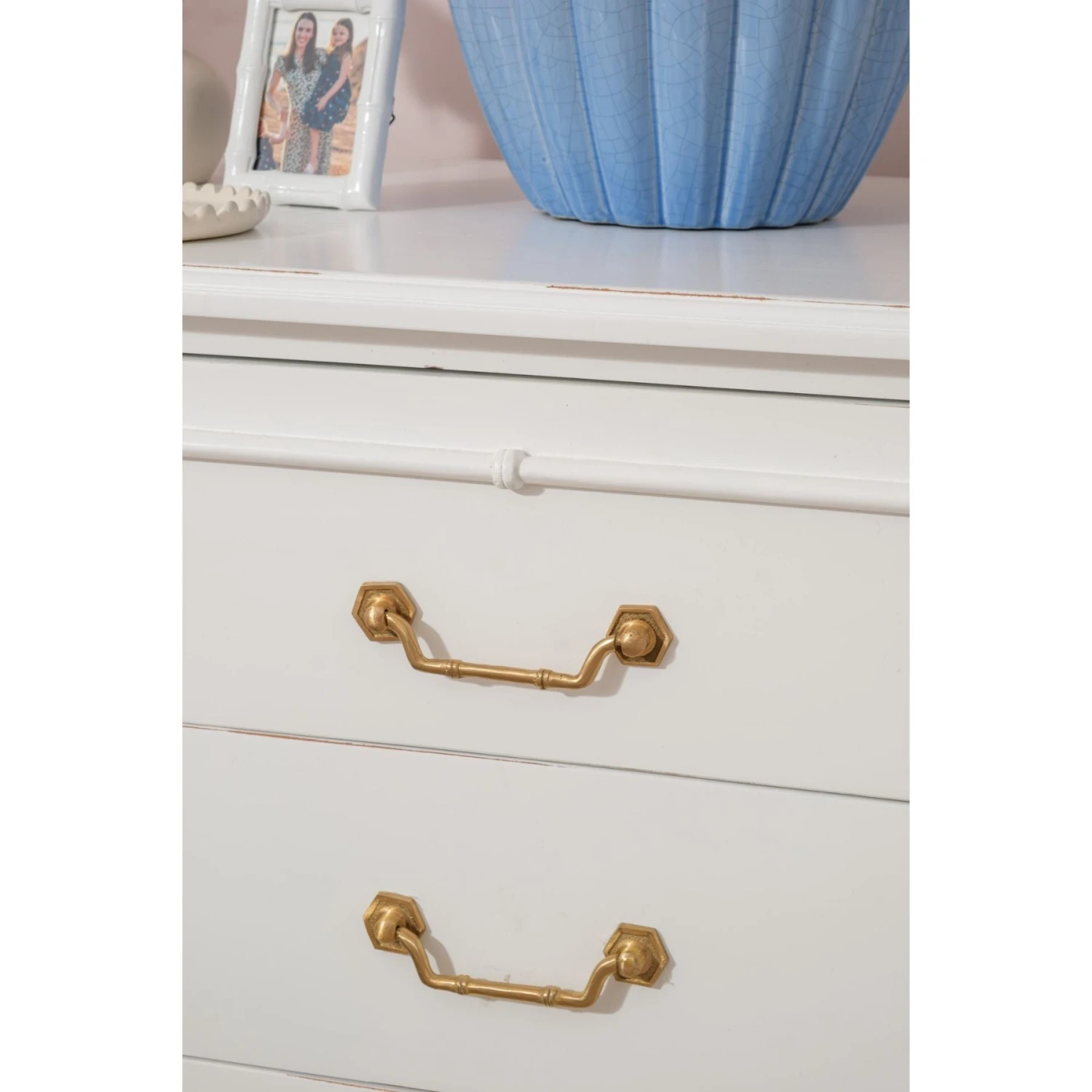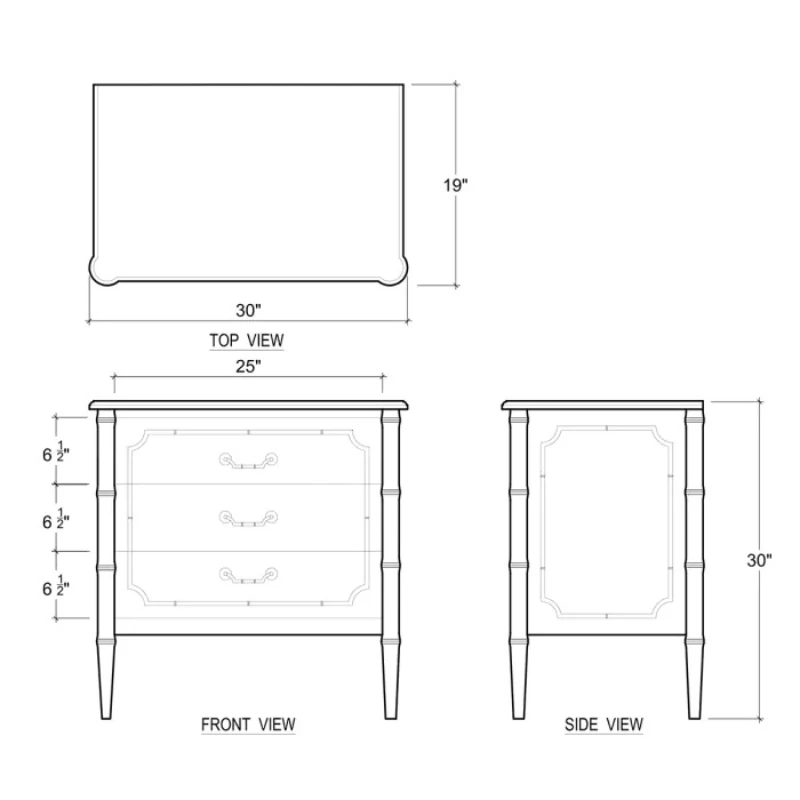 Bring timeless elegance to your bedroom with the Monaco Nightstand. Featuring a fresh white finish with light distressing and bamboo-inspired detailing, this piece combines coastal charm with classic sophistication. The three spacious drawers provide ample storage for your bedside essentials, while the detailed hardware adds a touch of refined luxury.