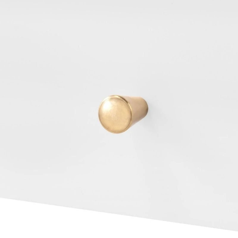 - Hardware: polished brass pulls.