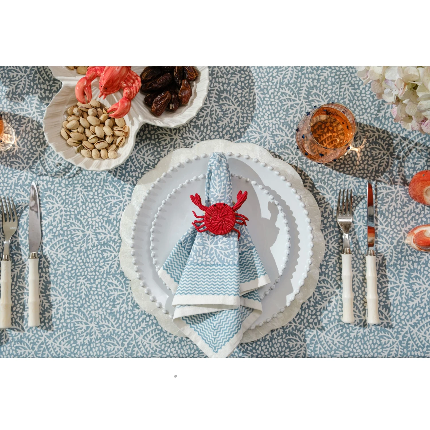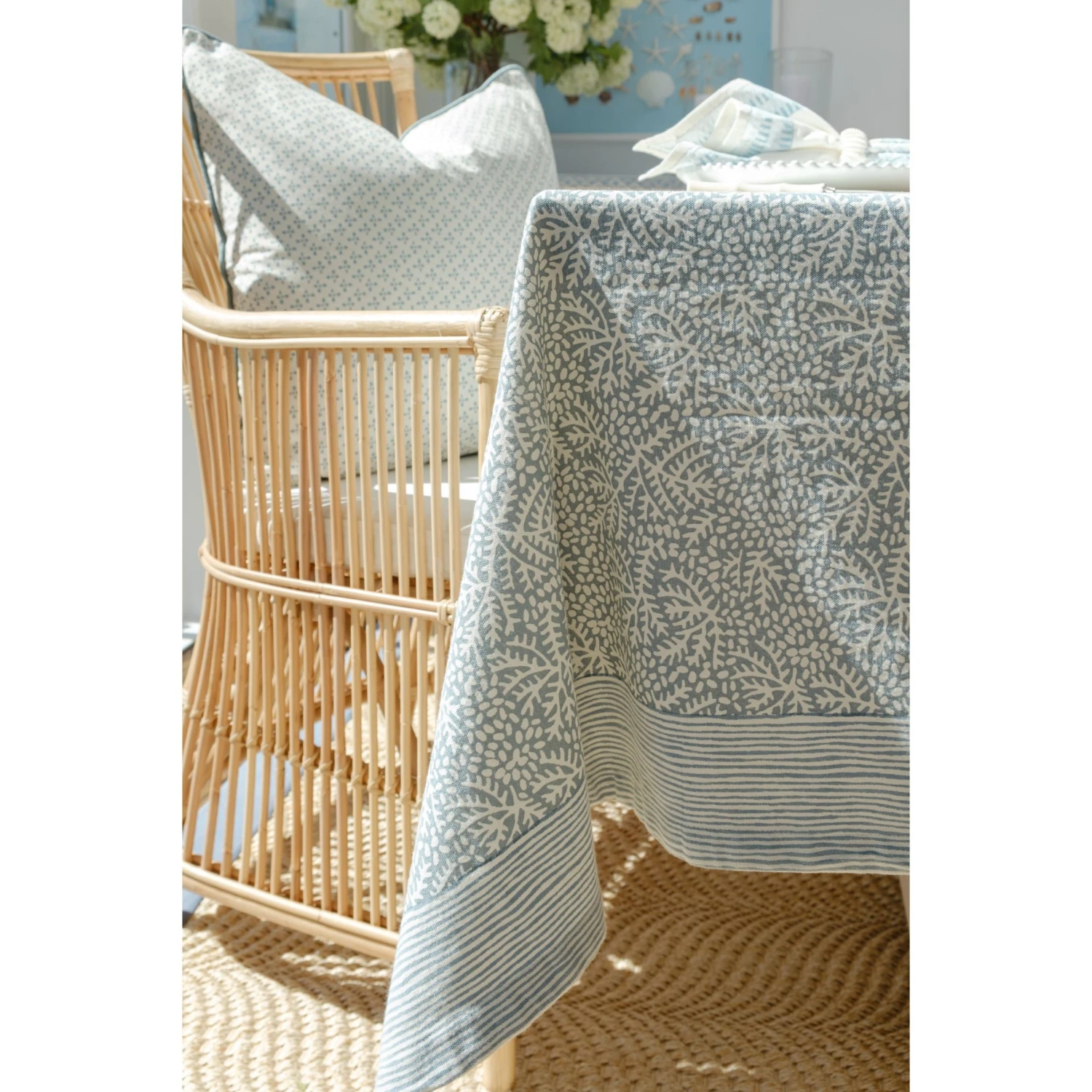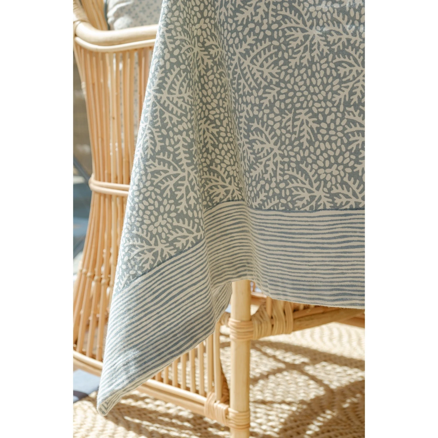 Soft, airy, and effortlessly elegant, our Normandy Tablecloth sets the perfect foundation for a beautifully layered tablescape. Its delicate botanical print, framed by subtle hand-drawn stripe trim, evokes a relaxed yet refined coastal feel. Crafted from 100% cotton, it drapes beautifully over the table, making every meal feel like a special occasion. Pair it with the Normandy Napkins for a cohesive and thoughtfully styled setting.