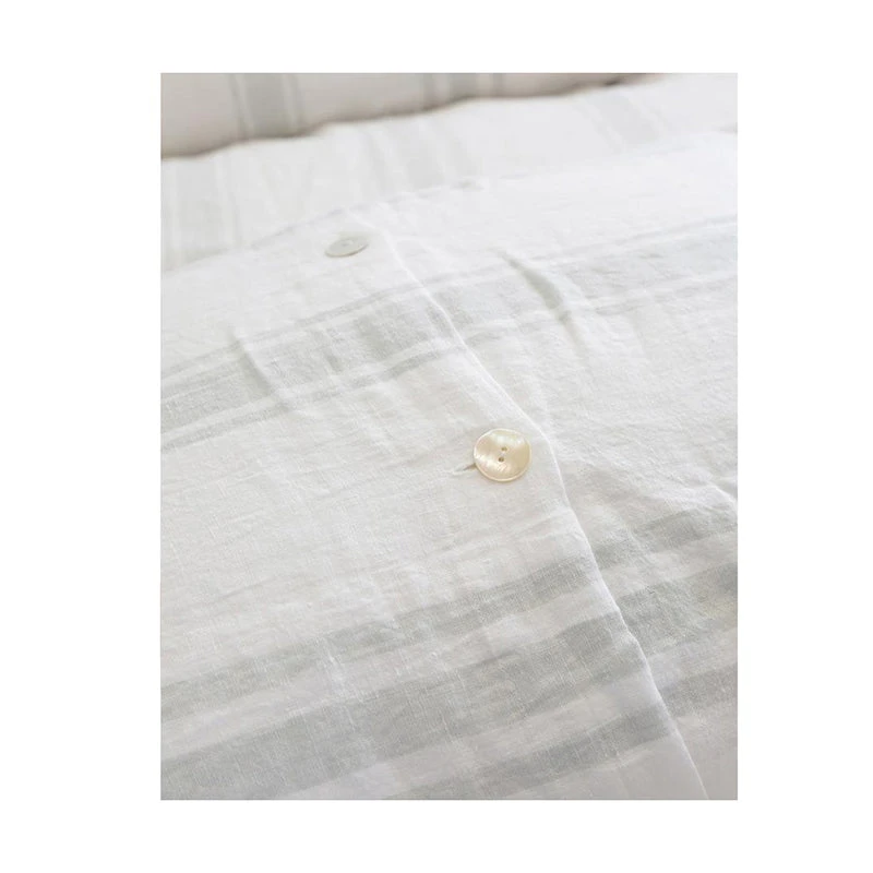 Our North Shore Duvet Cover offers a coastal casual look. It features a series of subtle ocean-hued stripes on white design. Finished with shell button closures, this stylish duvet cover is the perfect finishing touch for a beachy bedroom. Duvet insert not included.