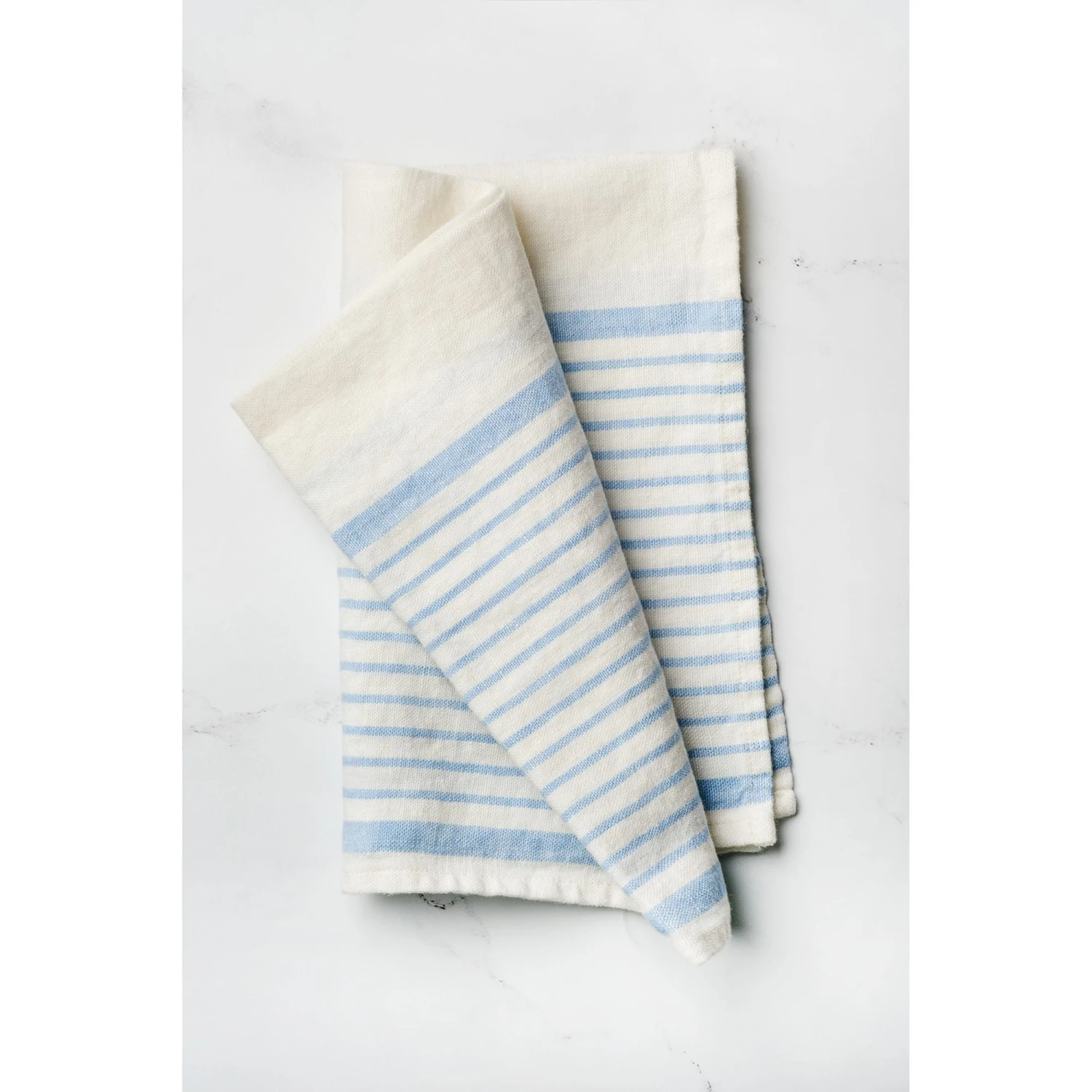 Handmade of 100% stonewashed linen, our Ojai Linen Everything Towel features a light blue and white stripe design. Produced in Europe from locally grown flax, this large, versatile luxury linen towel can be used as a hand towel in a bathroom or dishtowel in a kitchen. Â