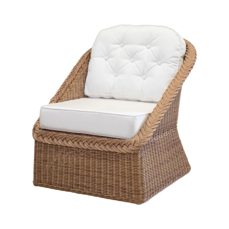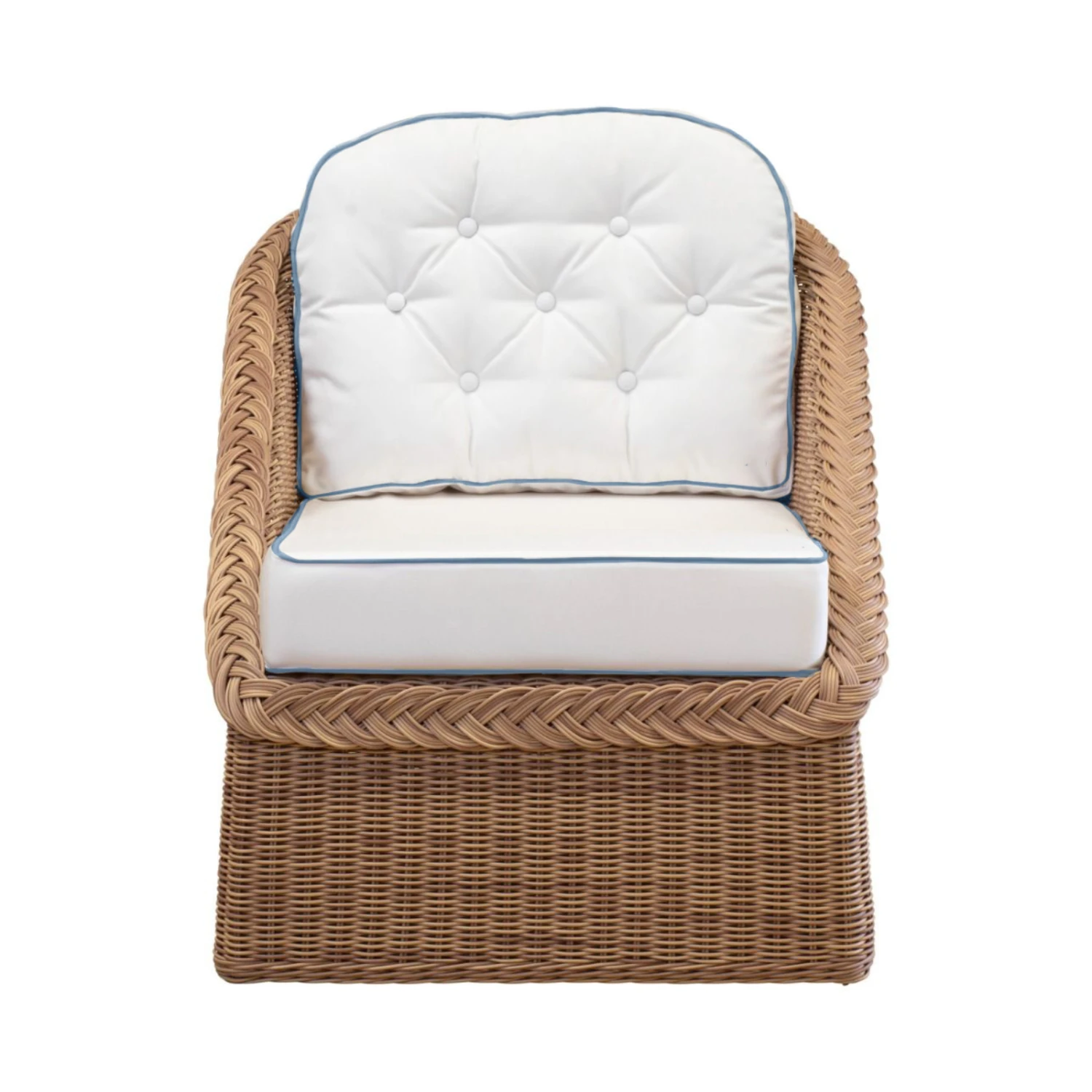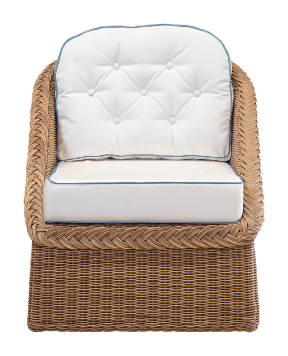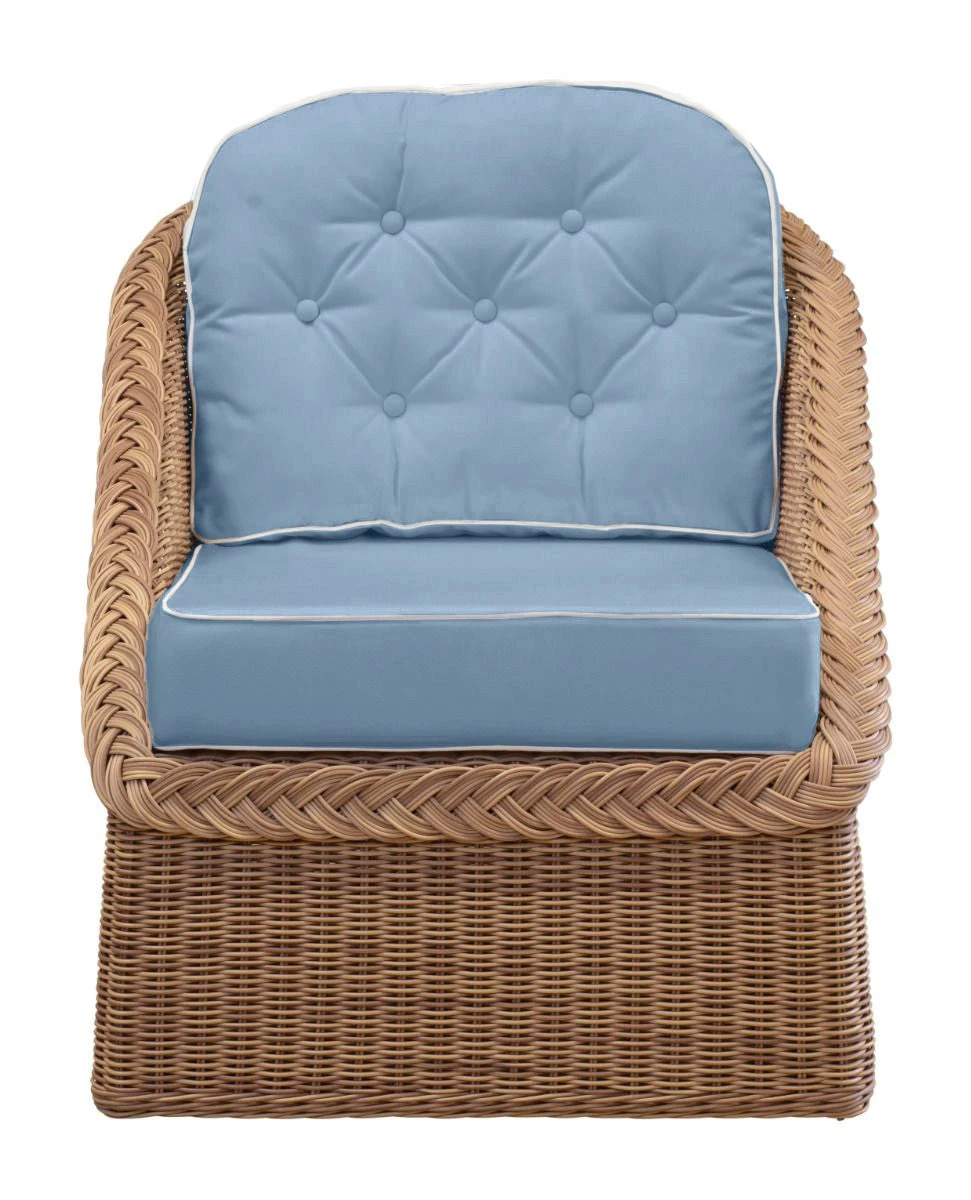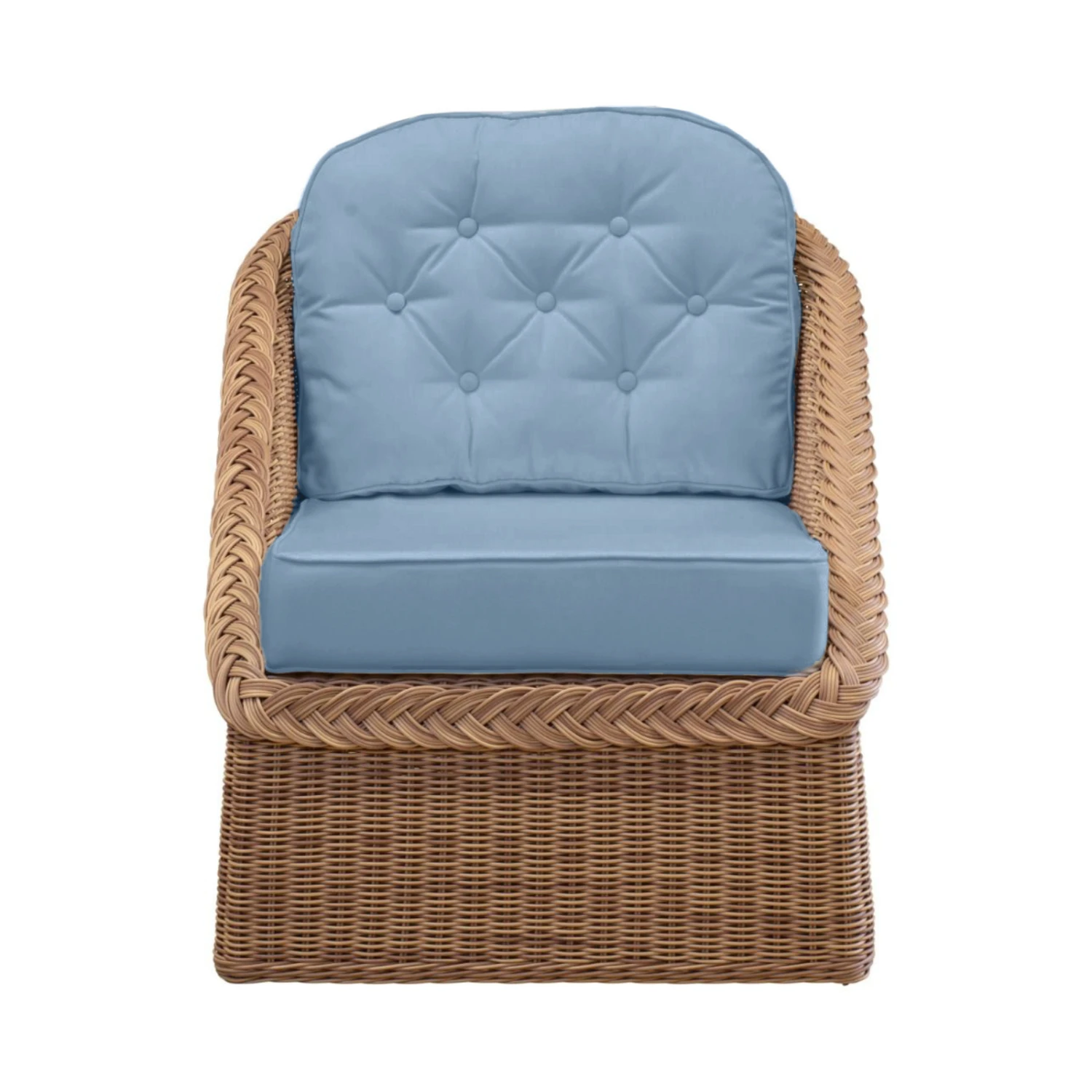 Timeless and tailored, the Outdoor Palm Lounge Chair brings refined comfort to al fresco living. Crafted from durable rattan with a handwoven texture, it features a subtly curved frame and plush, removable cushions for laid-back lounging. Whether styled on a porch, patio, or sunroom, it’s a relaxed yet polished addition to your outdoor space.
