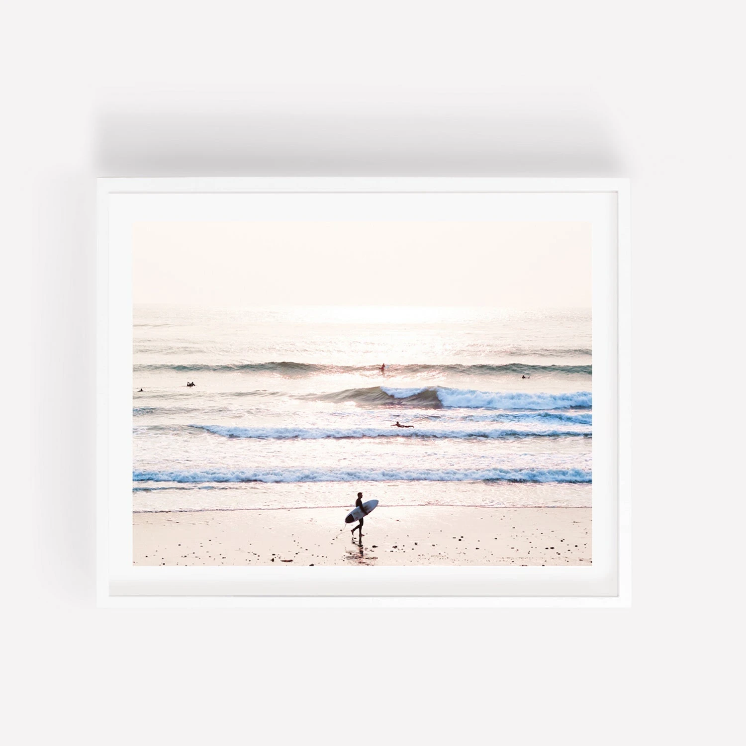 This beautiful photograph captures a quintessential Southern California moment, featuring the silhouette of a Malibu surfer during magic hour. Printed on premium matte photo paper.
