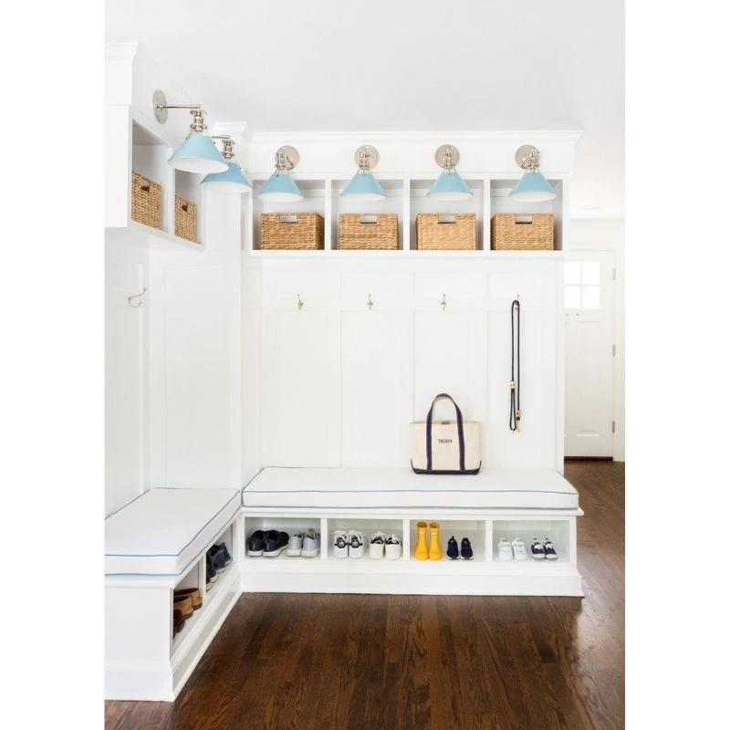 Classic meets industrial with the Painted No.2 Sconce. Designed by Mark D Sikes with a splash of his signature blue and sleek, heritage-inspired Polished Nickel details. Each fixture features a Polished Nickel shade that is metal on the inside and painted Bird Blue on the outside. This modern design is distinctly approachable and perfectly suited for any space from a living room to a bathroom or a library.