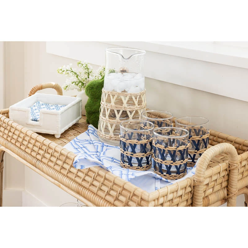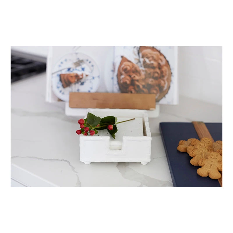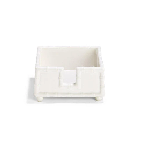 Keep napkins neat and orderly with this stylish glazed ceramic napkin holder. The ceramic has been molded into the shape of bamboo around the edges and features four round feet so it stands raised above your countertop. Perfect for your next dinner party!