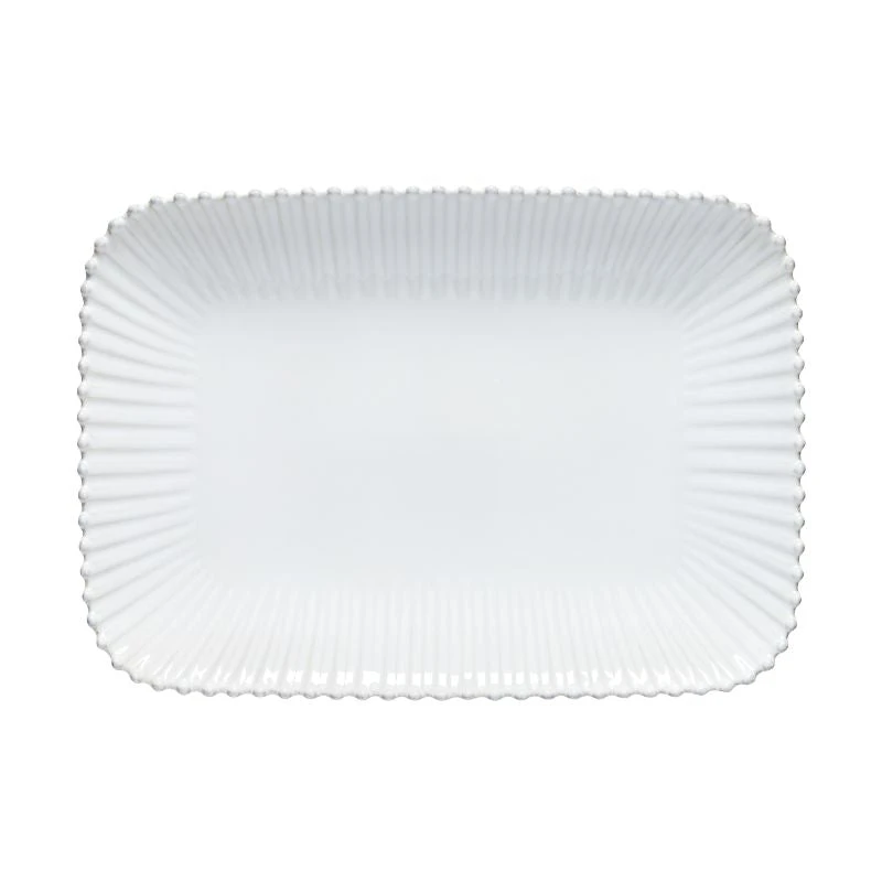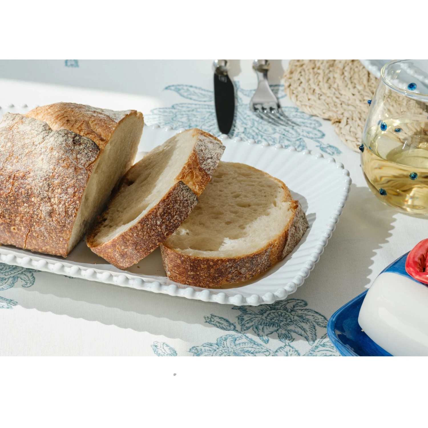 Entertain in style with this striking beaded platter. Handmade from fine stoneware in Portugal, our Pearl Rectangle Platter is beautifully embossed with a beaded edge, offering a unique trim on an otherwise classic style. The pearl-like beads are hand-brushed offering a handcrafted look. This traditional and elegant platter is sure to make a stunning addition to your next soiree.
