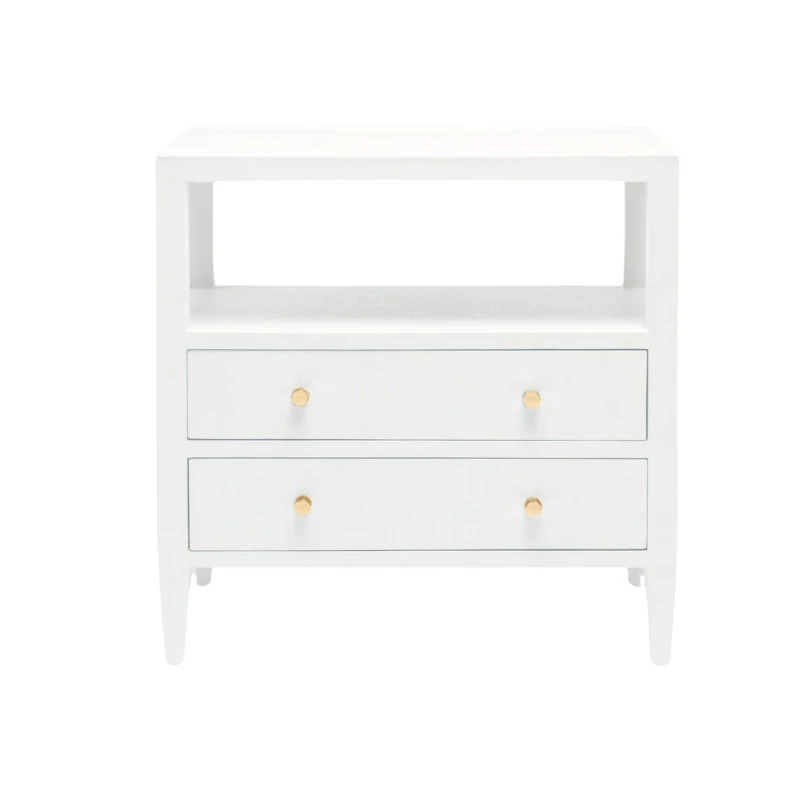 Clean lines, thoughtful craftsmanship, and a luxurious finish make the Polpis Nightstand a standout. Fully wrapped in faux Belgian linen and finished on all four sides, it brings refined texture to the bedroom from every angle. Smooth, bottom-mount European glides ensure the drawers open effortlessly—just one of the many details that elevate this piece above the rest. Available in three versatile hues—Bright White, Navy, and Natural White—it’s an elegant anchor for coastal-inspired living spaces.