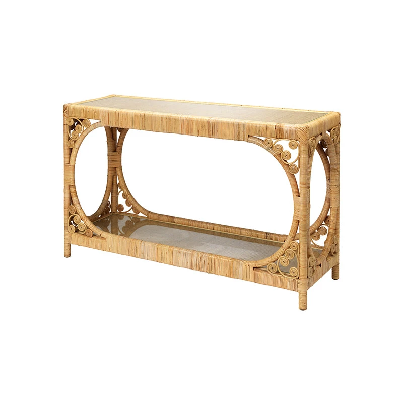 Evoking images of balmy beaches and warm tropical breezes, our Princeville Rattan Console is an easy, elegant upgrade to traditional rattan décor. The intricate details of this tropical yet sophisticated piece offers a look that is perfectly at home in any coastal casual or traditional space.