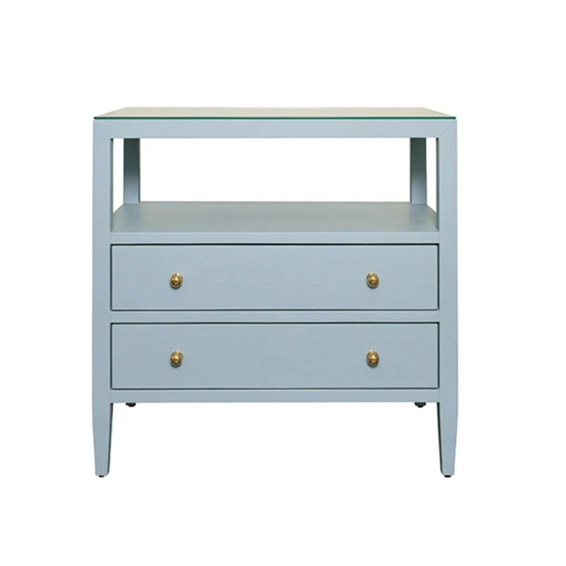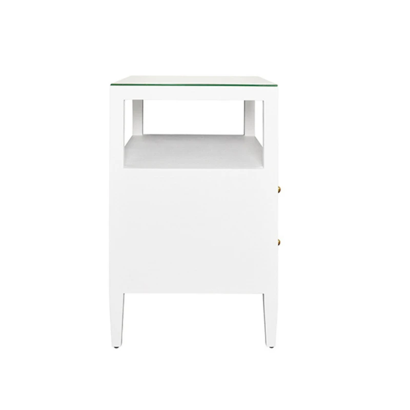 A refined blend of functionality and coastal-inspired style, this two-drawer nightstand features a textured white linen finish complemented by polished brass knobs. Its open top shelf provides the perfect spot for styling essentials, while the drawers offer ample storage for a tidy and serene bedside.