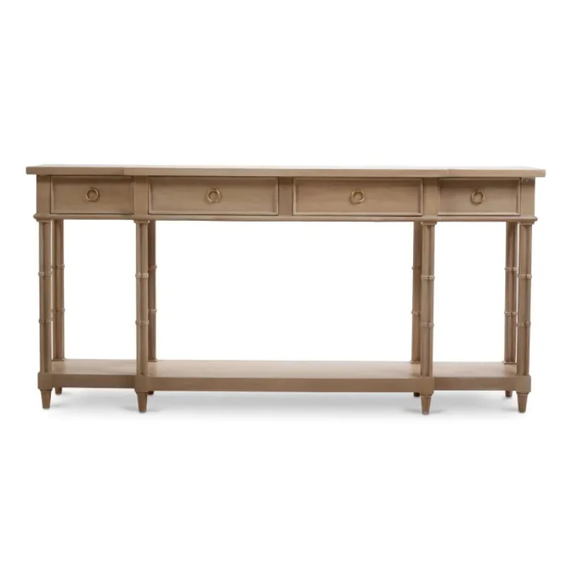 Streamlined and versatile, the Rye Console blends subtle design details with practical function. Its slim profile makes it an ideal addition to entryways or narrow spaces, while four drawers and a lower shelf provide thoughtful storage and display options.