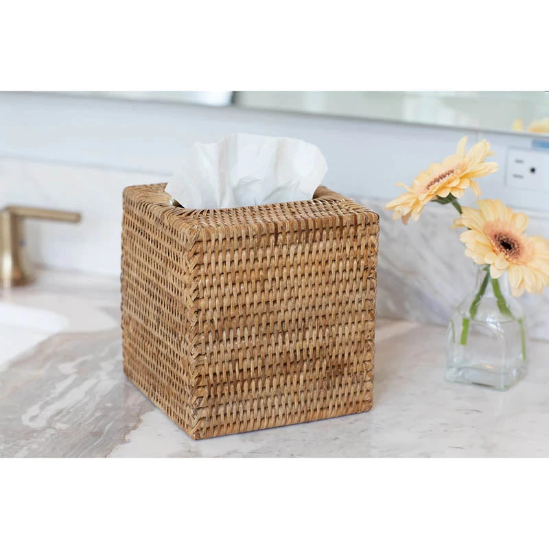 Woven from Burmese rattan, which is natural and sustainable, this chic tissue box cover gives a classic Hamptons-style coastal look. Featuring a durable construction and impeccable quality, our Sconset Tissue Box Covers pair with any other items in our Sconset collection, or can be styled alone.